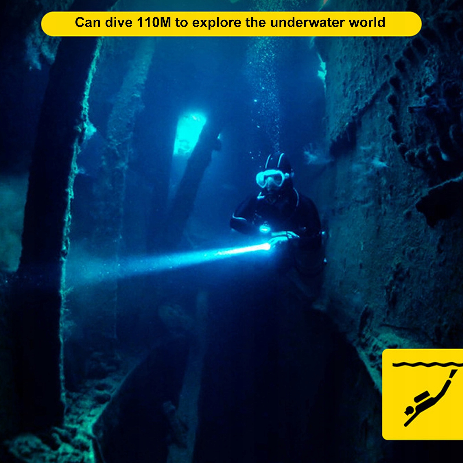 1. IPX8 Водонепроницаемый: этот фонарик имеет степень водостойкости IPX8, с глубиной дайвинга 110 метров, которая может использоваться для подводного освещения.
