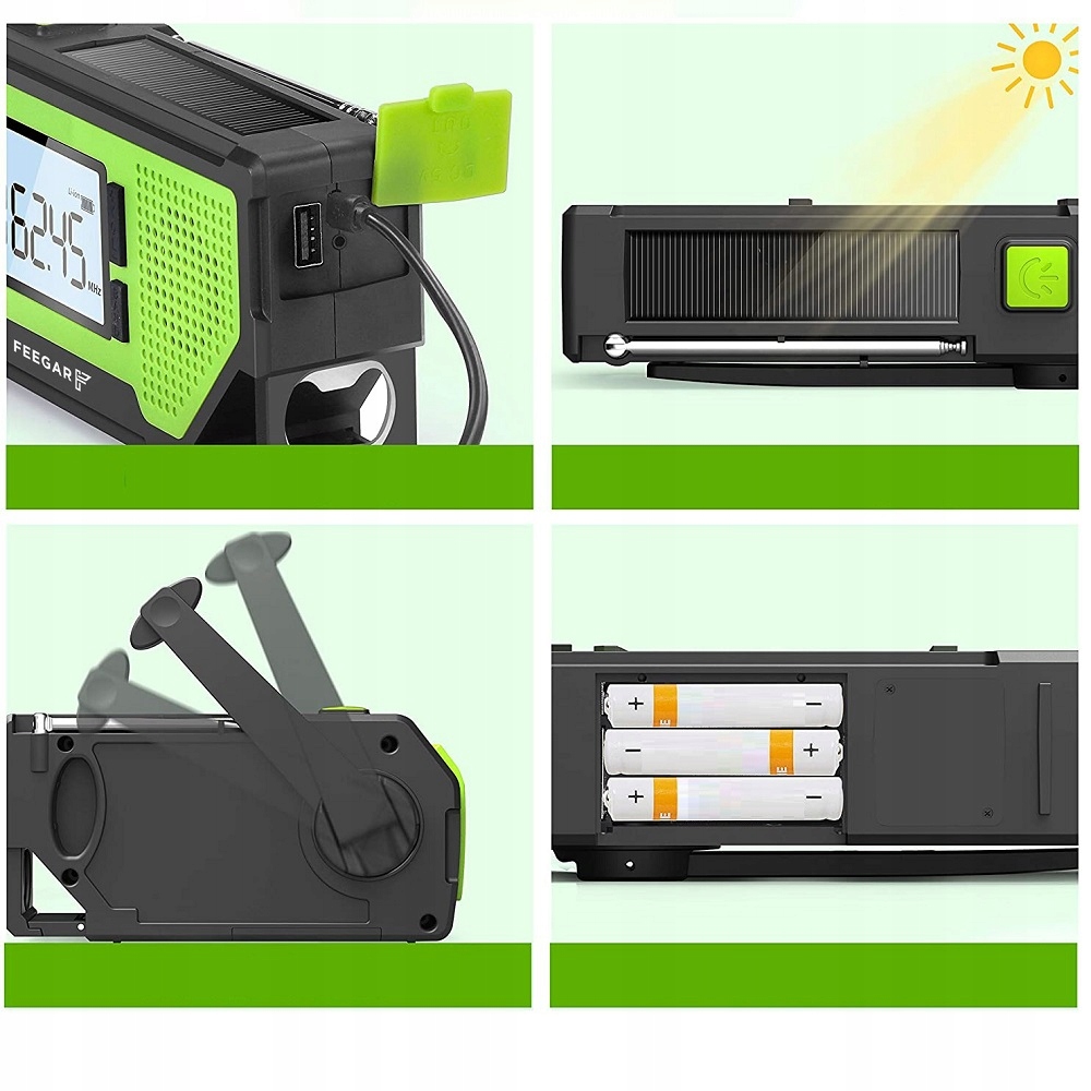 - Аварийная радиостанция Feegar OZE PRO имеет встроенную батарею емкостью 2000 мАч, которую также можно заряжать с помощью солнечной панели и динамо-машины. Это идеальный вариант для укромных и тихих мест, где поблизости нет розетки. Дополнительно его можно питать от радиоприемника с помощью батареек ААА или через USB-кабель, входящий в комплект.