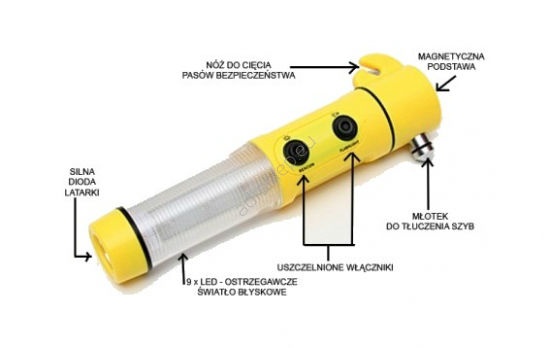 Фонарик жизни, нож, молоток, сирена-4 в 1