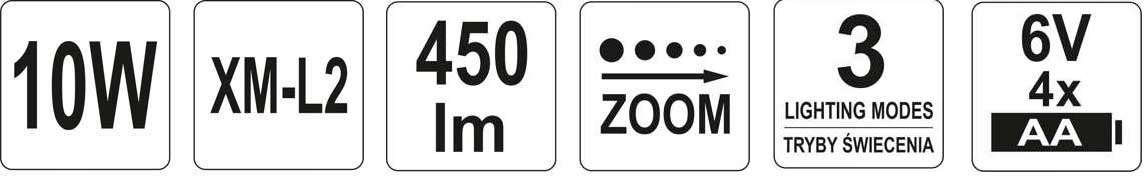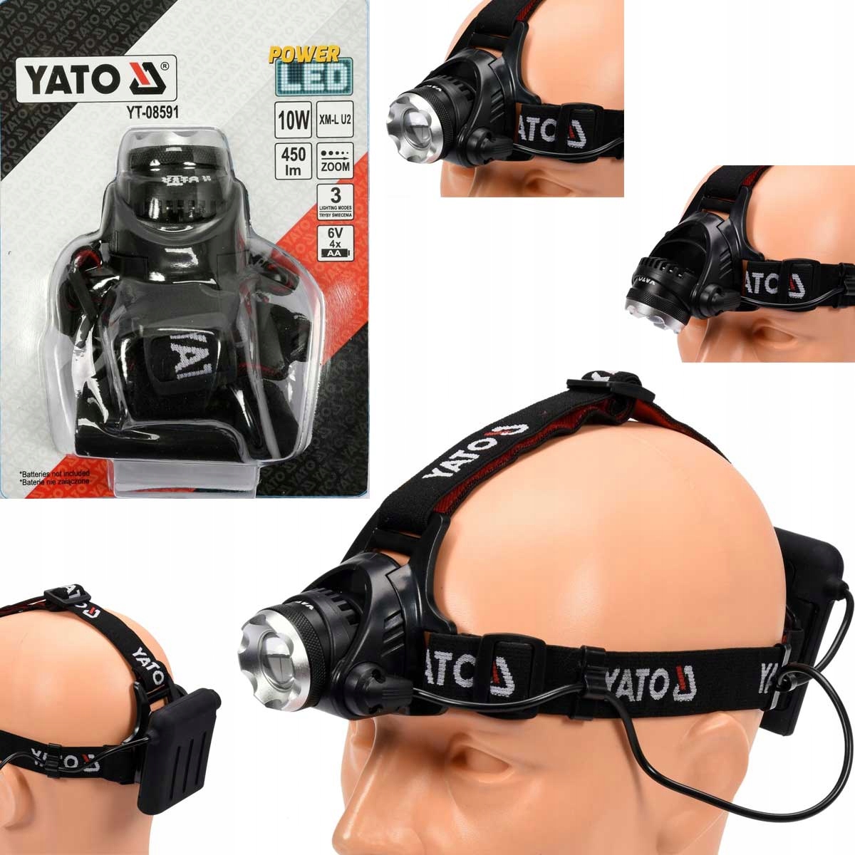 Налобный фонарь (так называемый налобный фонарь) YATO, 10 Вт, с функцией масштабирования.