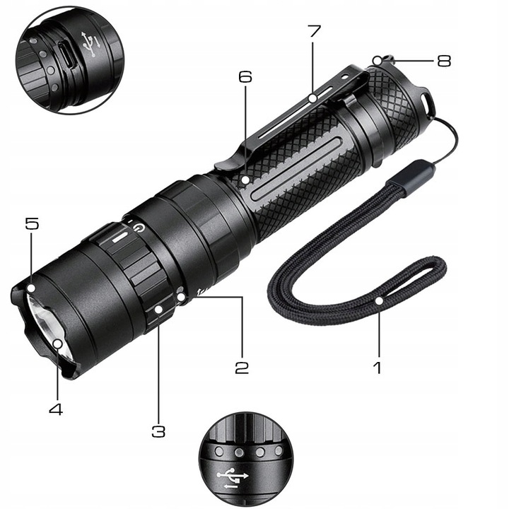 ТАКТИЧЕСКИЙ ФОНАРЬ СВЕТОДИОДНЫЙ, ПОИСК USB, ЛАМПА PRO VAYOX