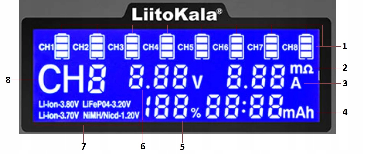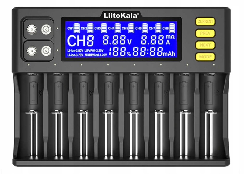 LiitoKala Lii-S8 — это умное универсальное зарядное устройство, которое может заряжатьпочти все литий-ионные, никель-ионные и Ni аккумуляторы -MH/Ni-Cd, LiFePO4-3,20В и Ni-MH-9В.