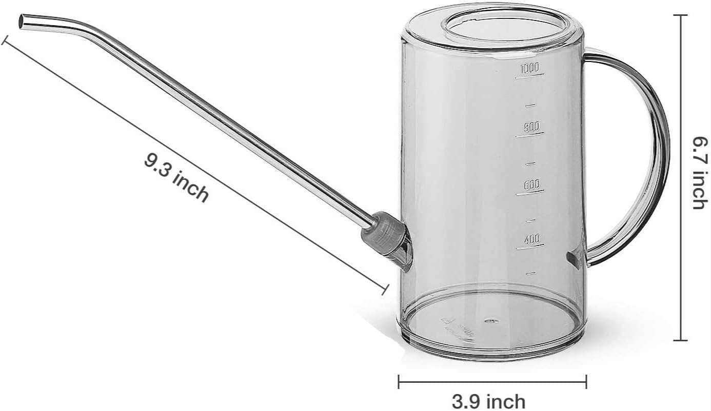 Лейка MEETOZ для горшечных растений с длинным носиком, нержавеющая сталь, 1 литр - легко измеряемая шкала - современная - растения в горшках/суккуленты/цветы/сад (серый)