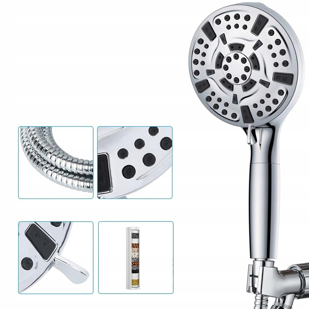 ✅ Недавно улучшенная душевая насадка с фильтром имеет 18-ступенчатую систему фильтрации, включающую сульфит кальция, камень майфан, щелочные шарики и шарики для дехлорирования. Эта насадка для душа с фильтром для жесткой воды эффективно удаляет 99,99% хлора, тяжелых металлов, запахов и других загрязнений. Использование очищенной воды поможет сохранить натуральные масла ваших волос и тела увлажненными и облегчить такие симптомы, как сухость волос и зуд кожи.