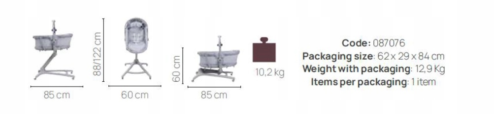 После отсоединения от рамы кровать устойчиво стоит на земле на 6 нескользящих ножках. Безопасное и уютное спальное место в корзине «Мозес», идеально подходящее для новорожденного. Он идеально подходит для первых месяцев жизни – обеспечивая малышу очень благоприятные и умиротворяющие условия для сна, а родителям – еще большую свободу в уходе за ребенком. Кровать в такой конфигурации легко перемещается между этажами дома; их можно легко транспортировать и использовать в качестве детской кроватки. Кровать полностью изготовлена из дышащей сетки, гарантирующей отличную вентиляцию; Повязка на голову с мягкими игрушками съемная. В комплект входит мягкий полноразмерный матрас. Внутренние размеры кровати: высота: 26 см, ширина: 36 см, длина: 76 см.