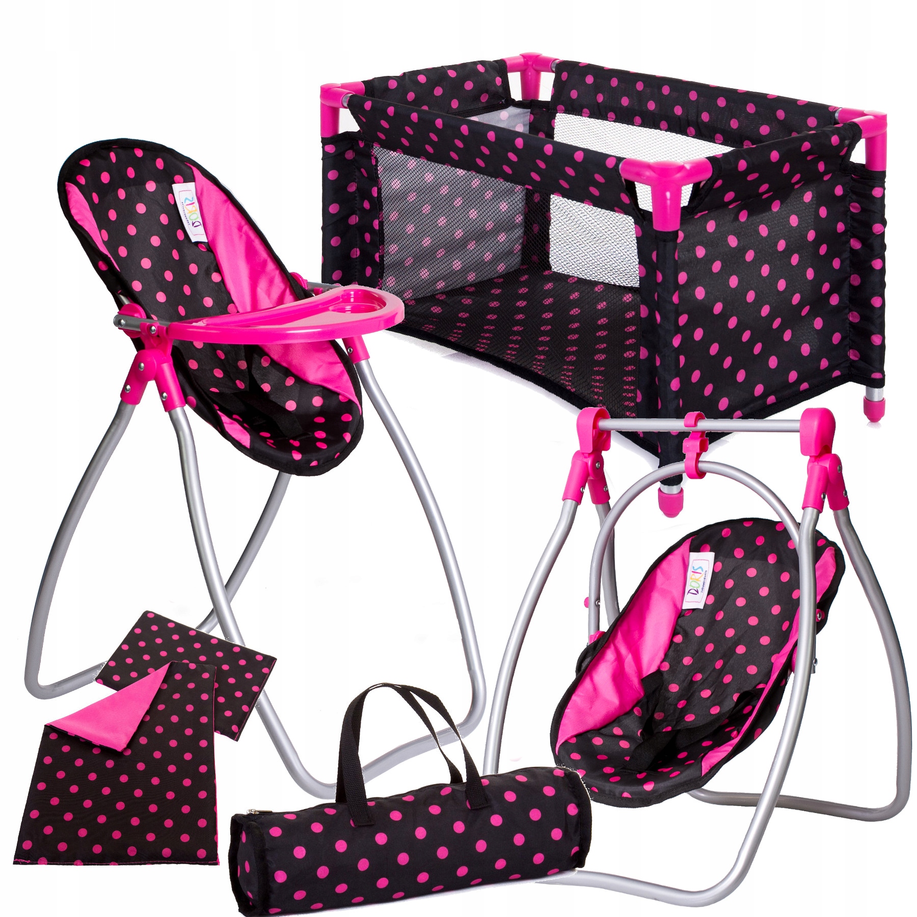 ДЕТСКАЯ КРОВАТКА ДЛЯ КУКОЛ СТУЛЬЧИК ДЛЯ КОРМЛЕНИЯ КАЧЕЛИ