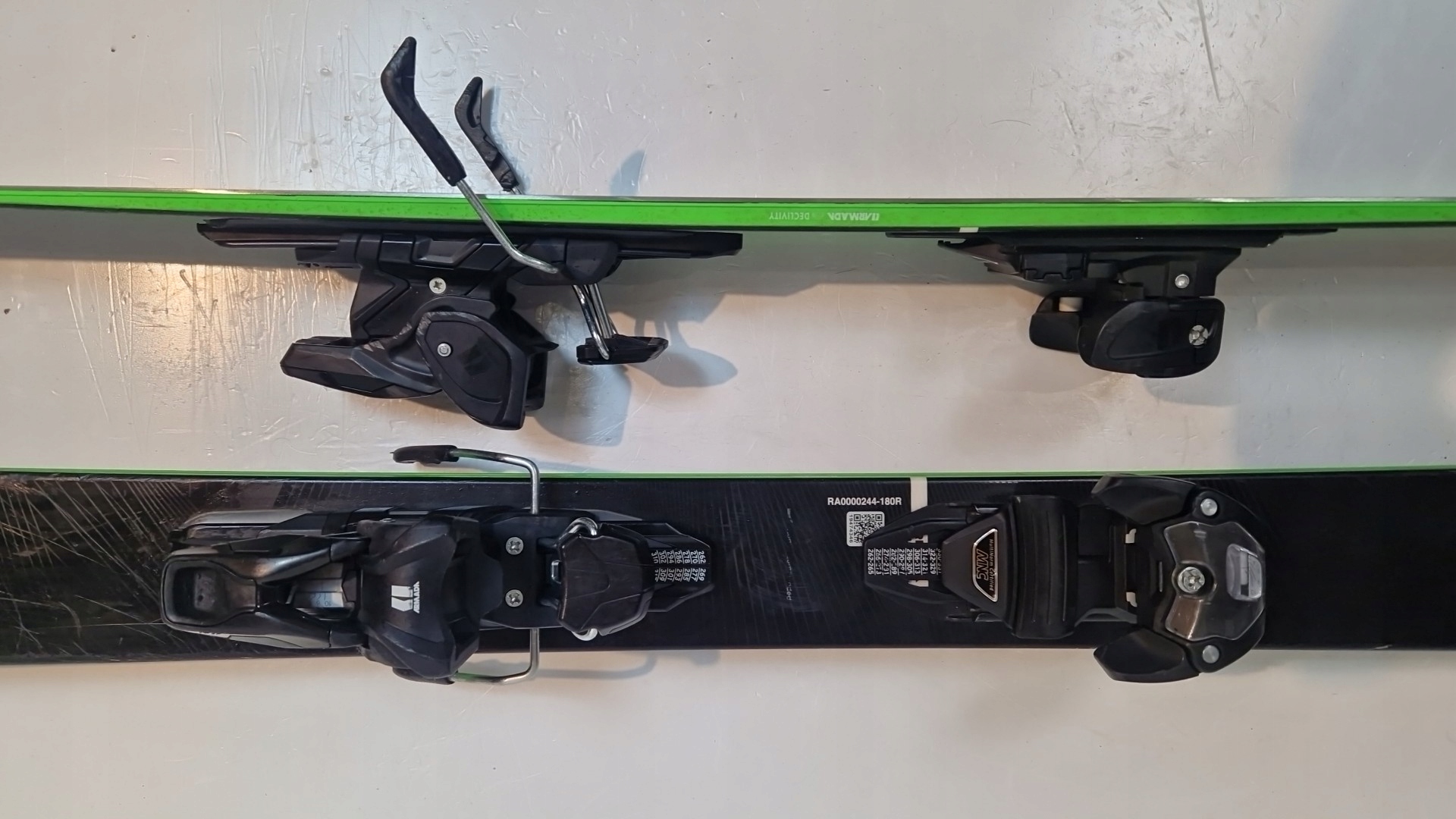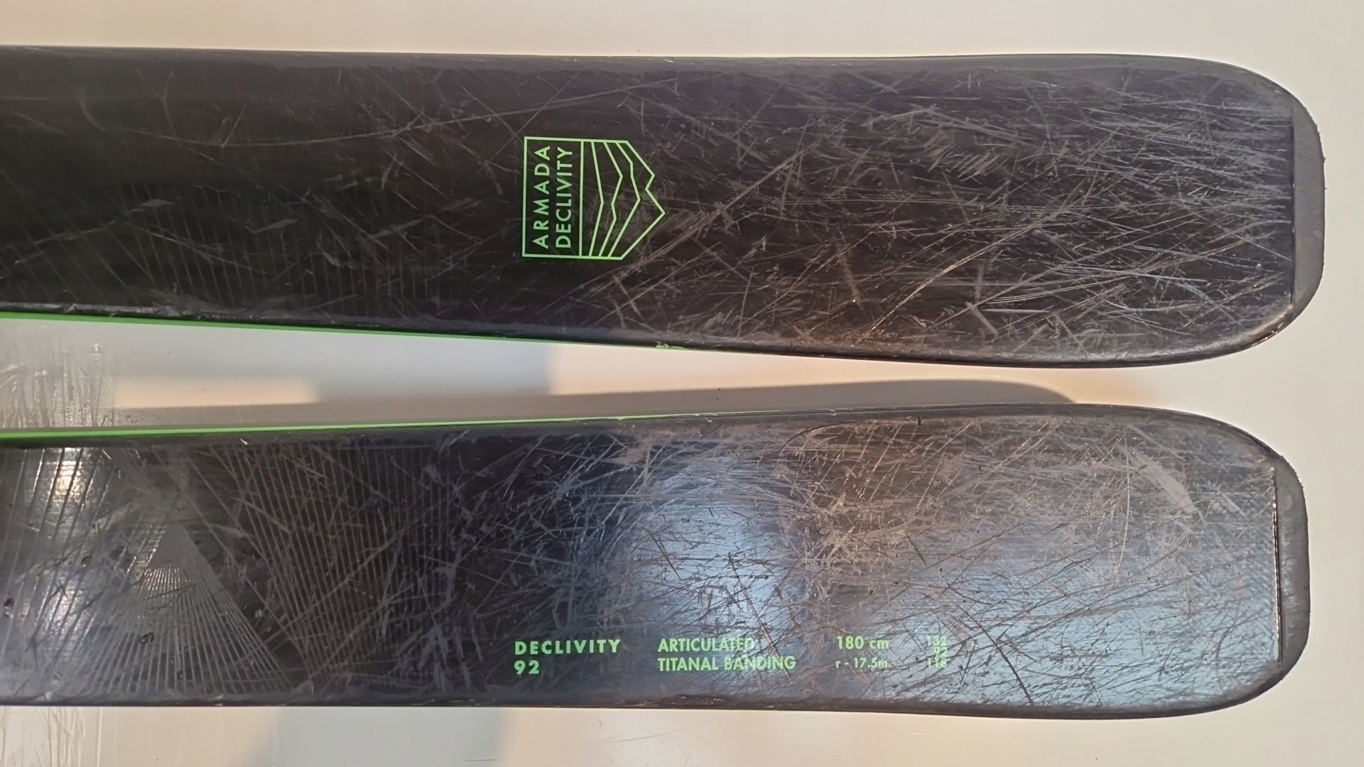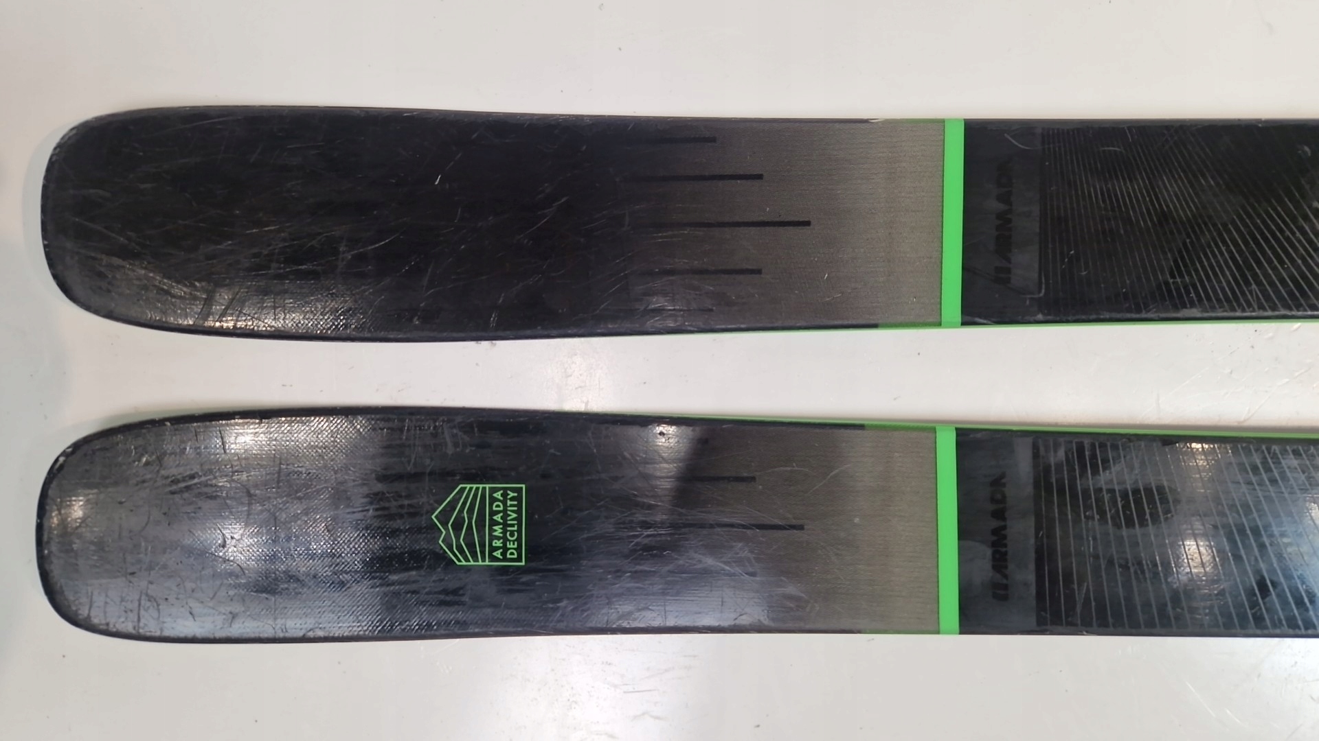 нижняя часть лыж: скользит и края толстые и равны по всей длине, в очень хорошем состоянии.
