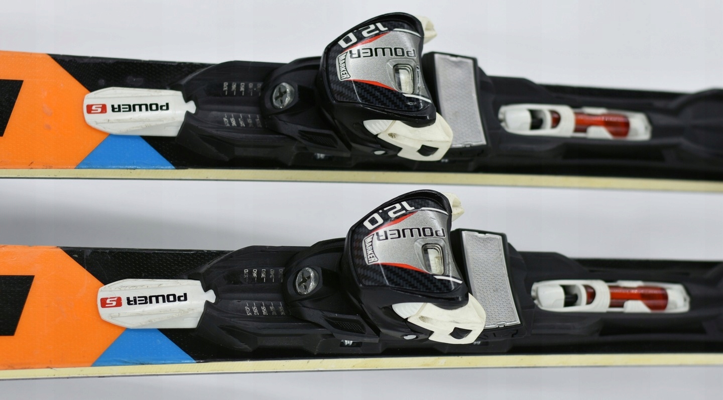 НА ОДНОЙ ЛЫЖЕ НЕТ ШКАЛЫ НА ЗАДНЕМ КРЕПЛЕНИИ ДЛЯ РЕГУЛИРОВКИ ТЯГАЮЩЕГО УСИЛИЯ (ДЕФЕКТ ВИДЕН НА ФОТО)
