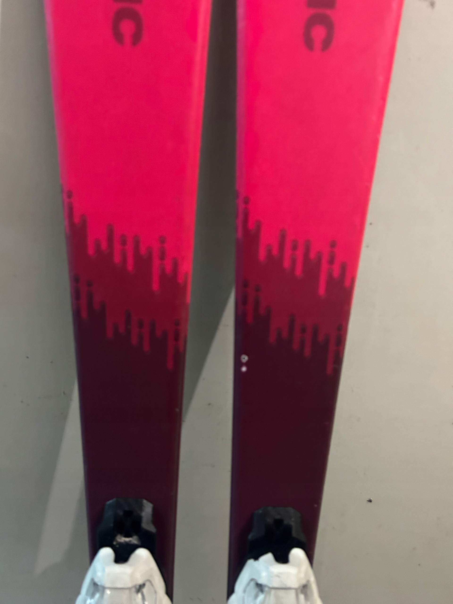 Лыжи в хорошем техническом состоянии! У них есть скол и потертость графического рисунка в нижней части лыжи! закреплено