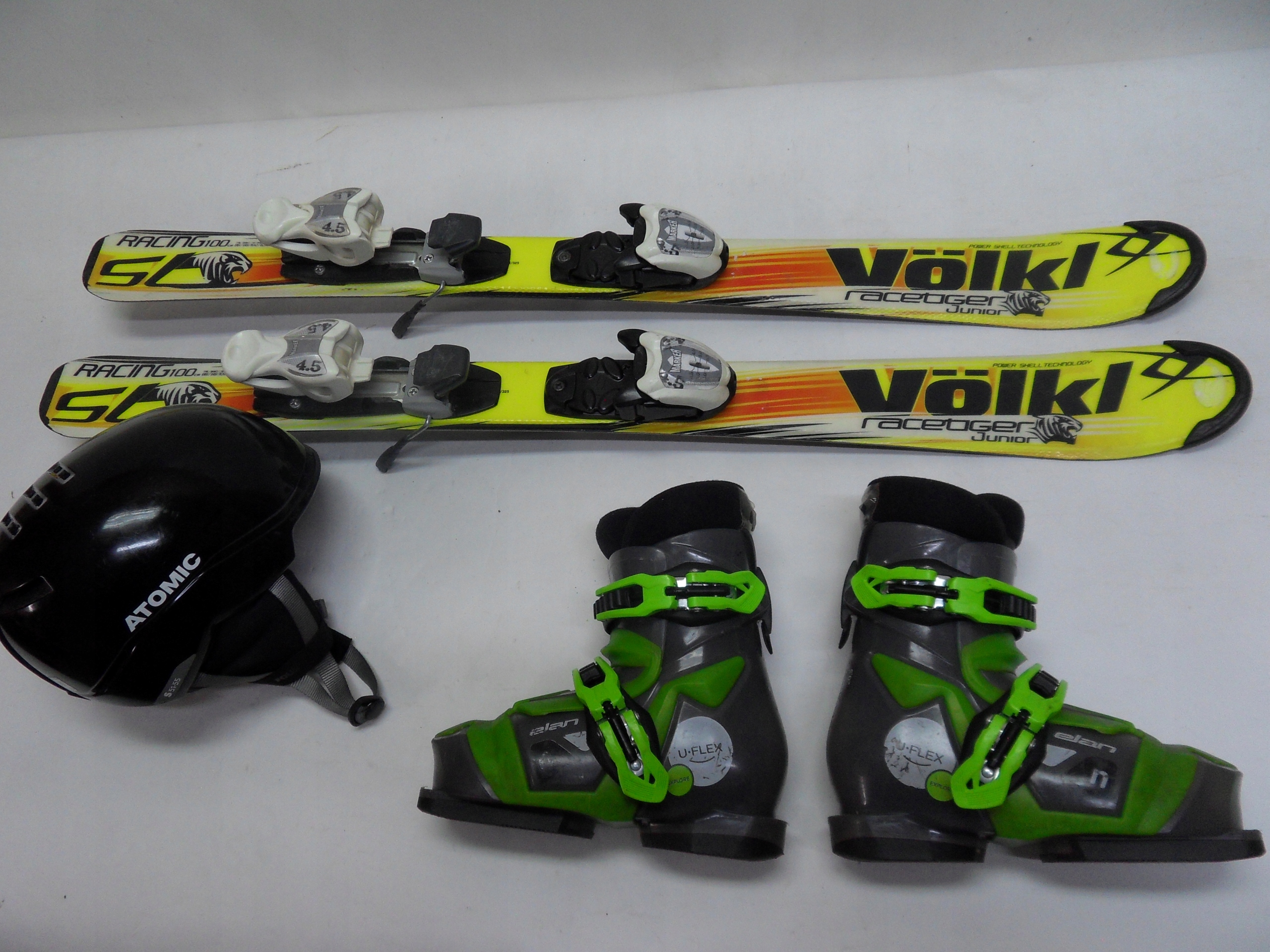 Лыжи VOLKL 100 см, ботинки, шлем КОМПЛЕКТ