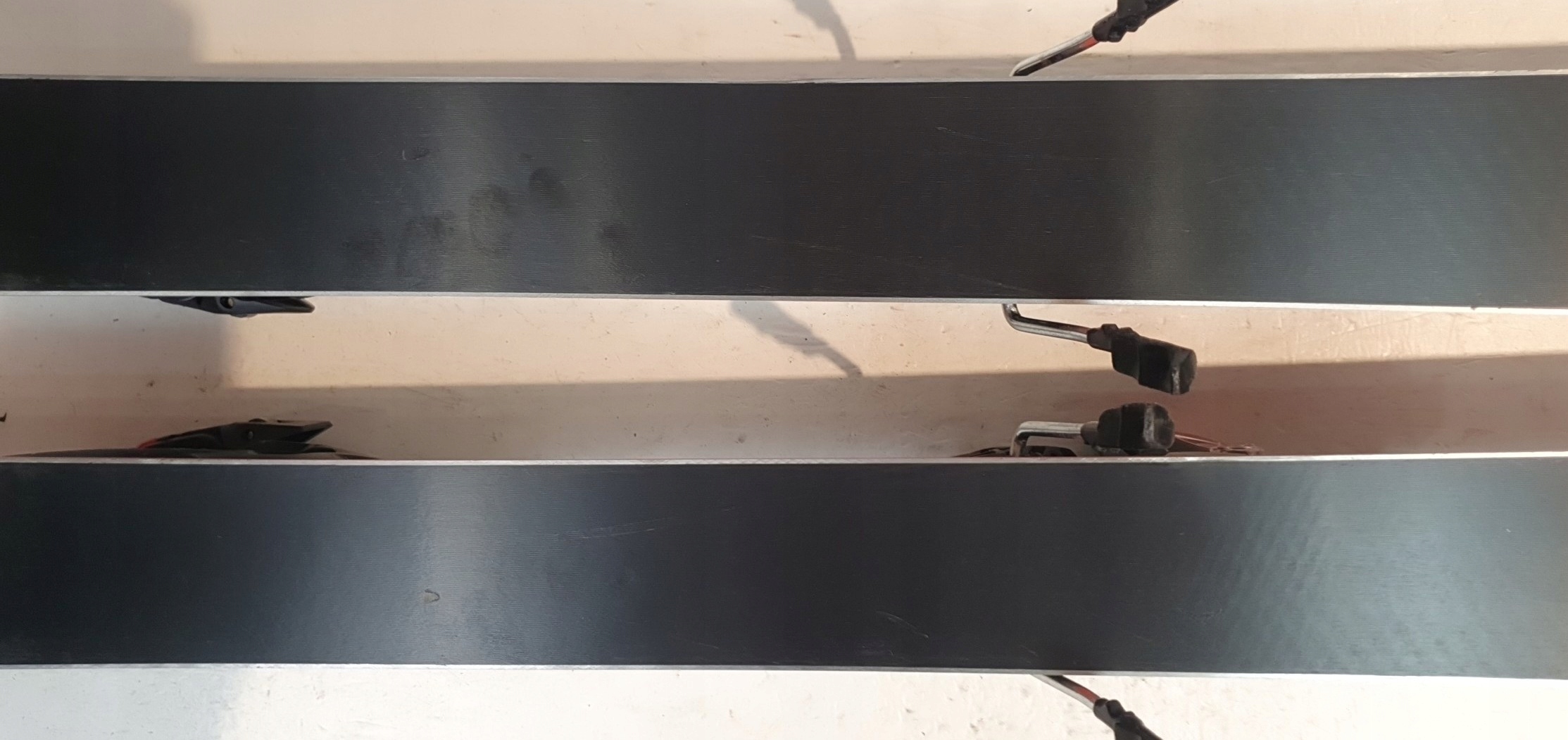 Низ лыж: Толстые и ровные основания и края по всей длине, в очень хорошем состоянии.