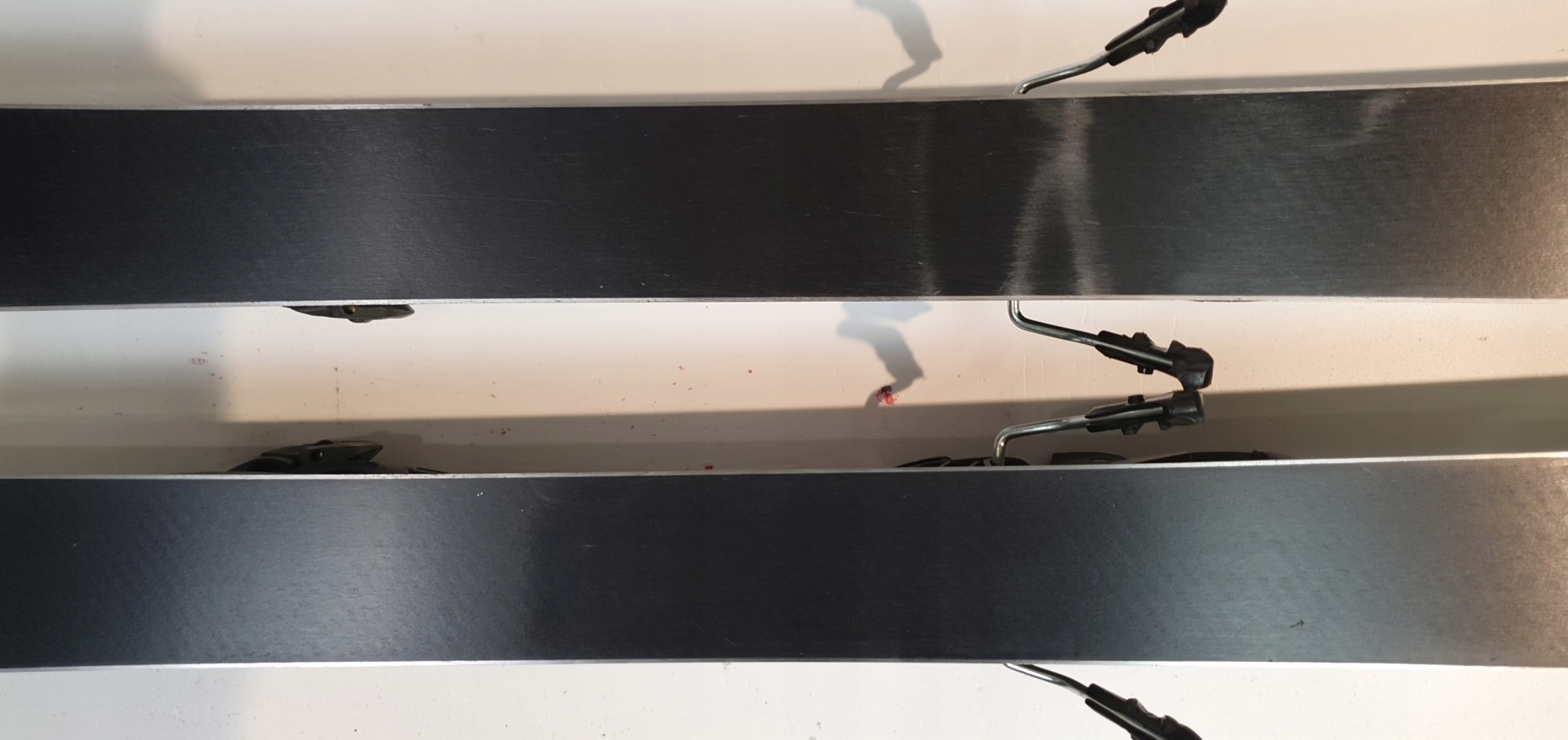 Низ лыж: Основания в очень хорошем состоянии, ширина одной кромки у одной лыжи более 1 мм, у остальных около 1,6 мм.
