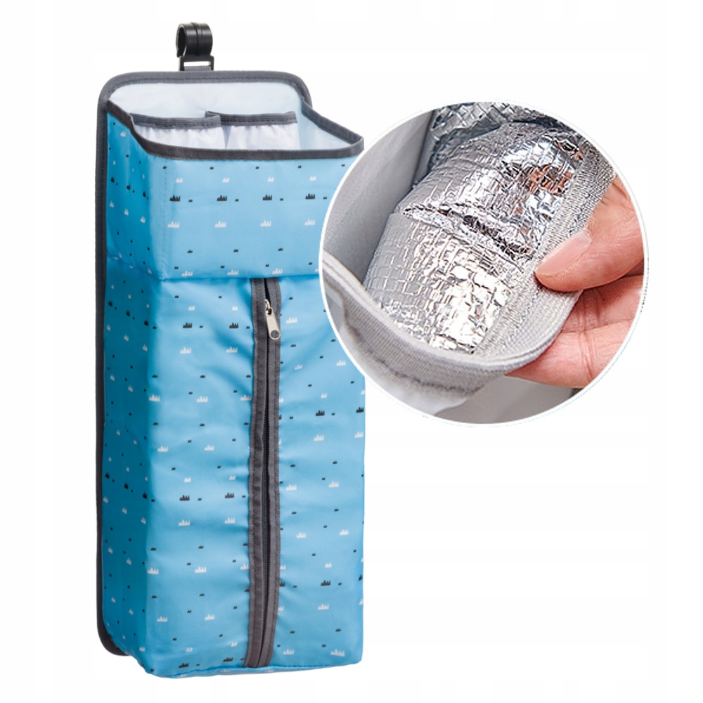 Органайзер изготовлен из прочного и легко чистящегося полиэстера. Если он испачкается, просто протрите материал тряпкой. Изделие имеет множество открытых карманов и полочек, а также два термокармана для детских бутылочек и карман на молнии для подгузников.