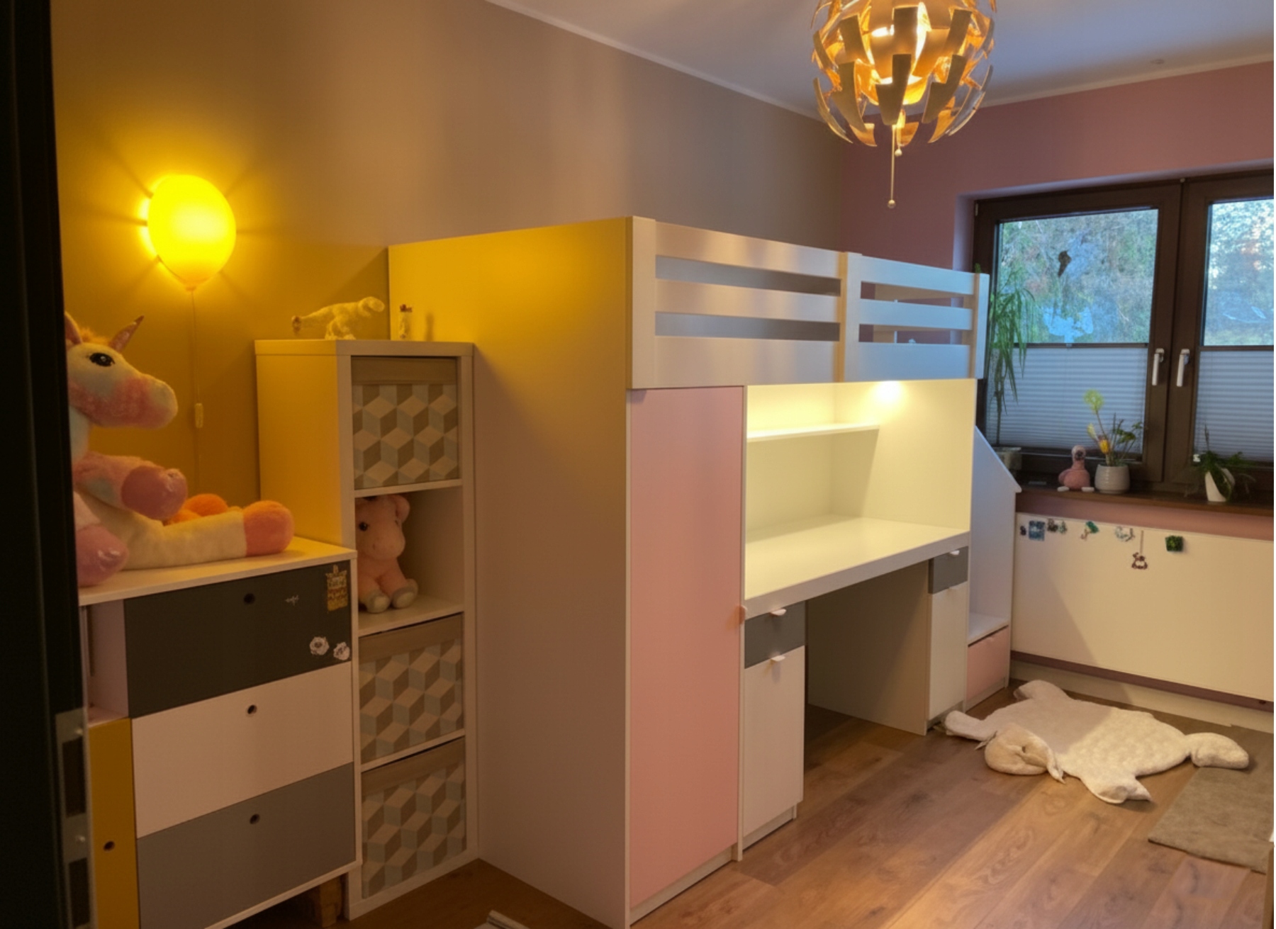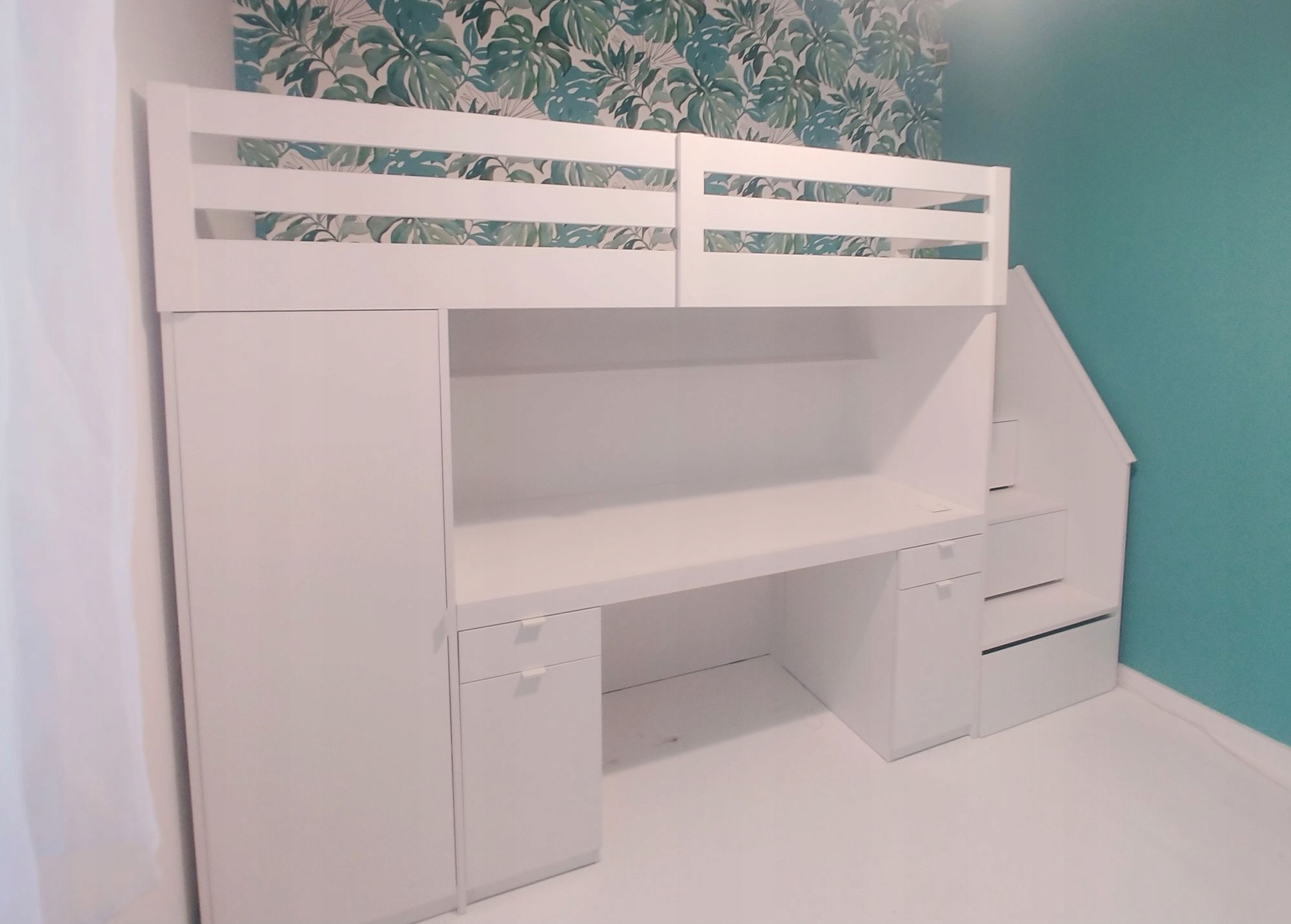 Кровать Mary Desk была создана как ответ на вопросы наших клиентов о возможности модификации/увеличения стола в других наших моделях. Мы решили создать новый, основным акцентом которого станет очень большой и просторный стол, отвечающий требованиям старшеклассников, а также тех, кому нужно больше места для развития и развития своих увлечений. К письменному столу мы добавили глубокую полку и два вместительных шкафа.