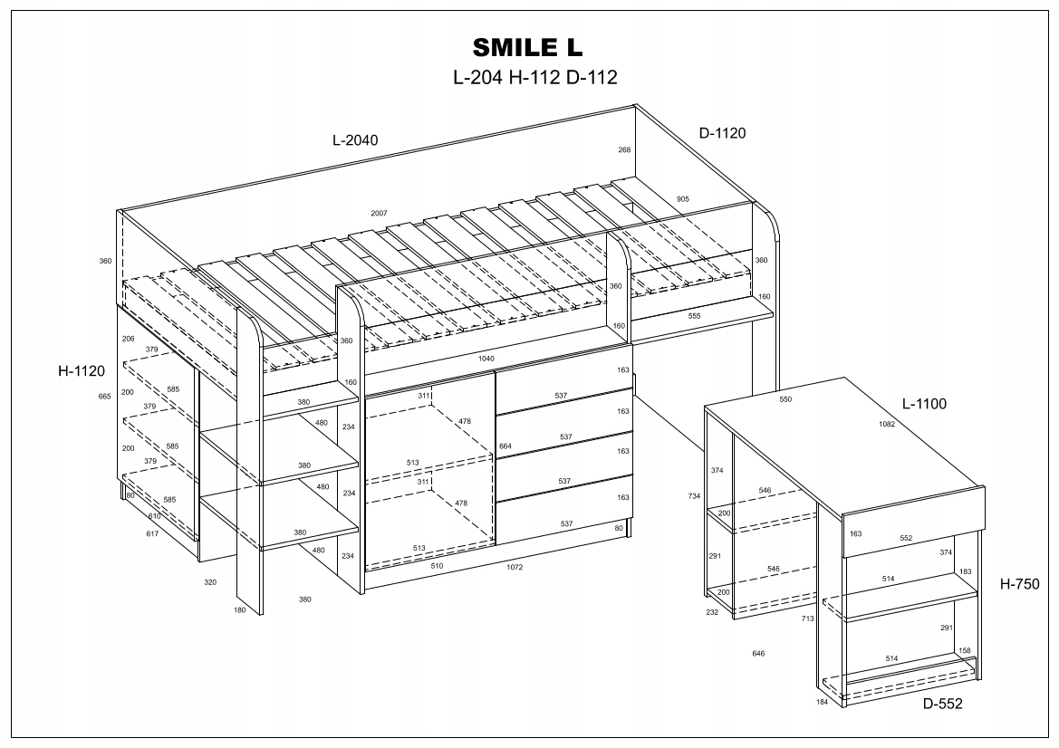 Ліжко-антресолі з письмовим столом SMILE L sonoma violet