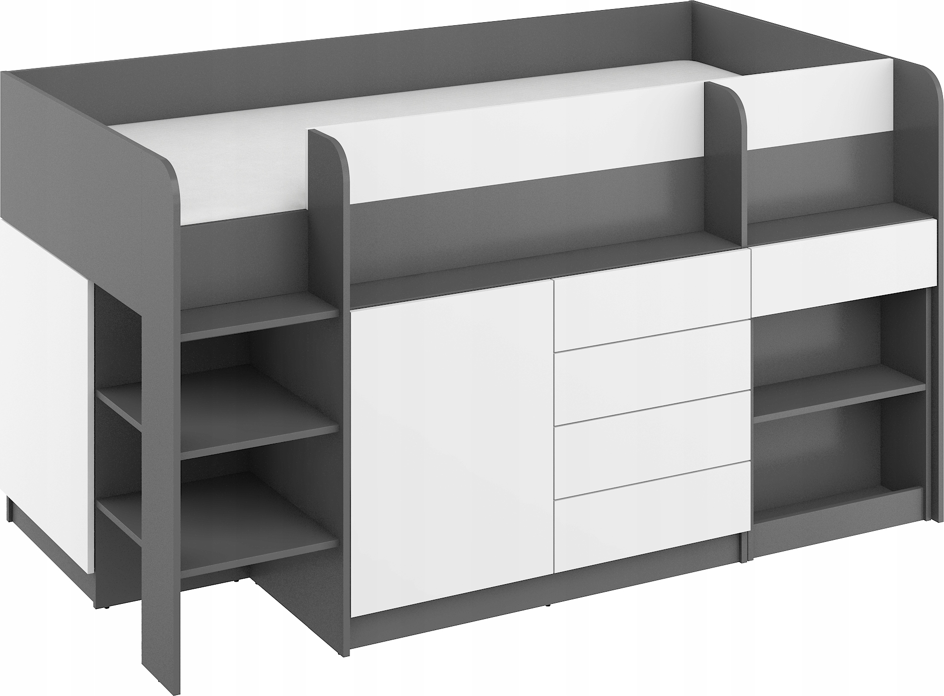 Ліжко-антресолі з письмовим столом SMILE Right, білий графіт