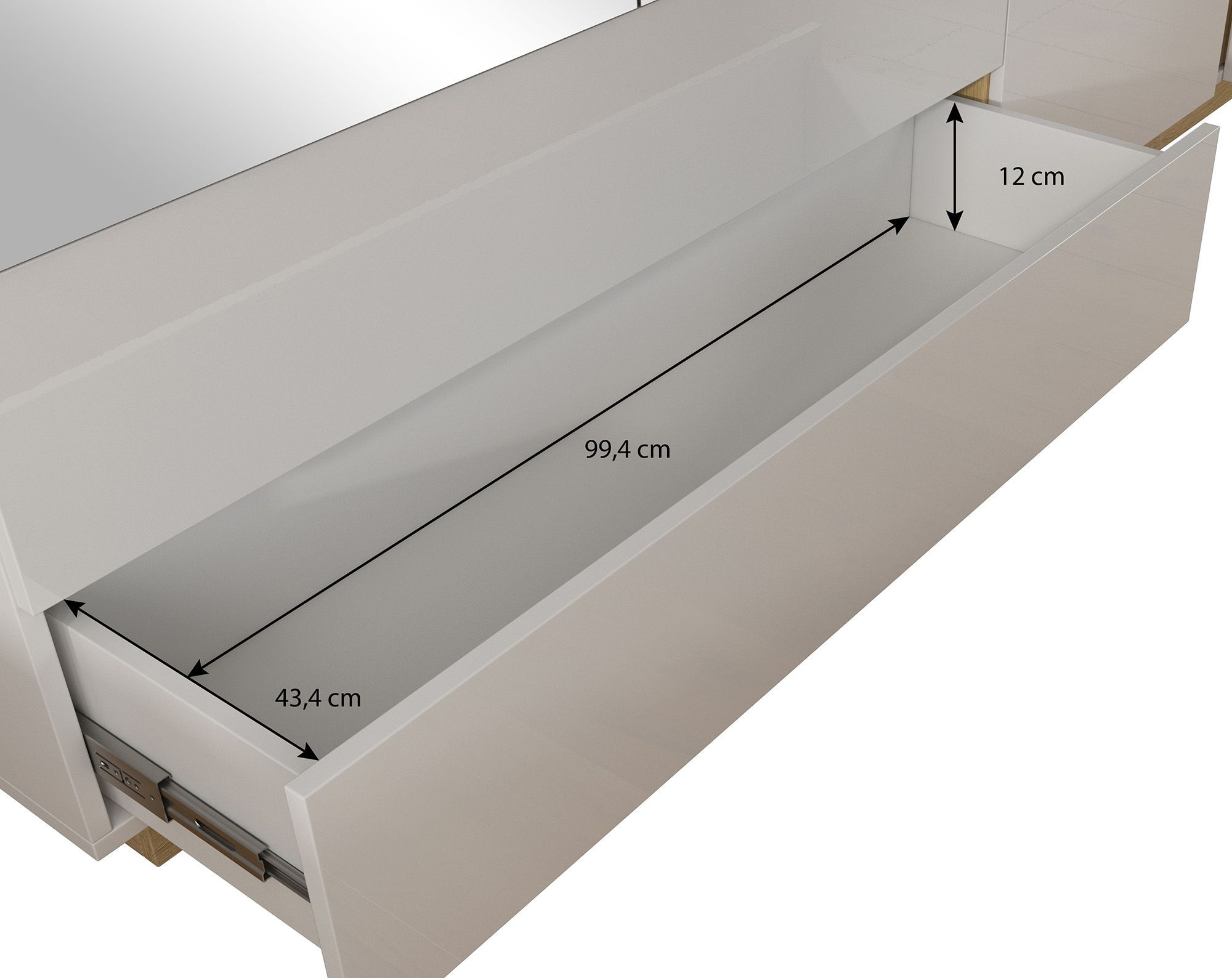- · В левой части шкафа имеется просторная ниша, оборудованная штангой для подвешивания одежды и двумя широкими выдвижные ящики на направляющих роликовых,