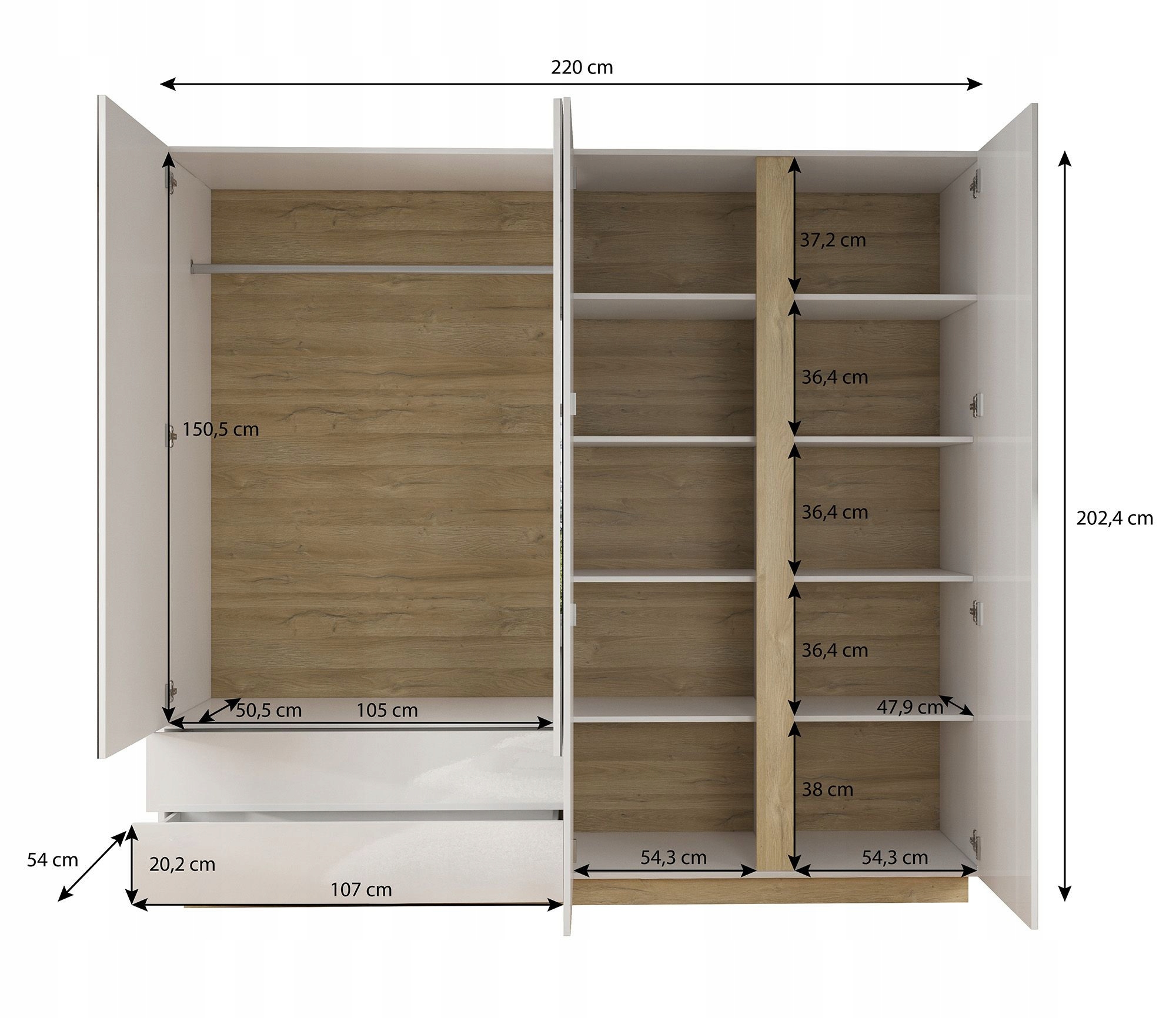 - - Шкаф с зеркалами - ширина 220 см/высота 202,4 см/глубина 54 см