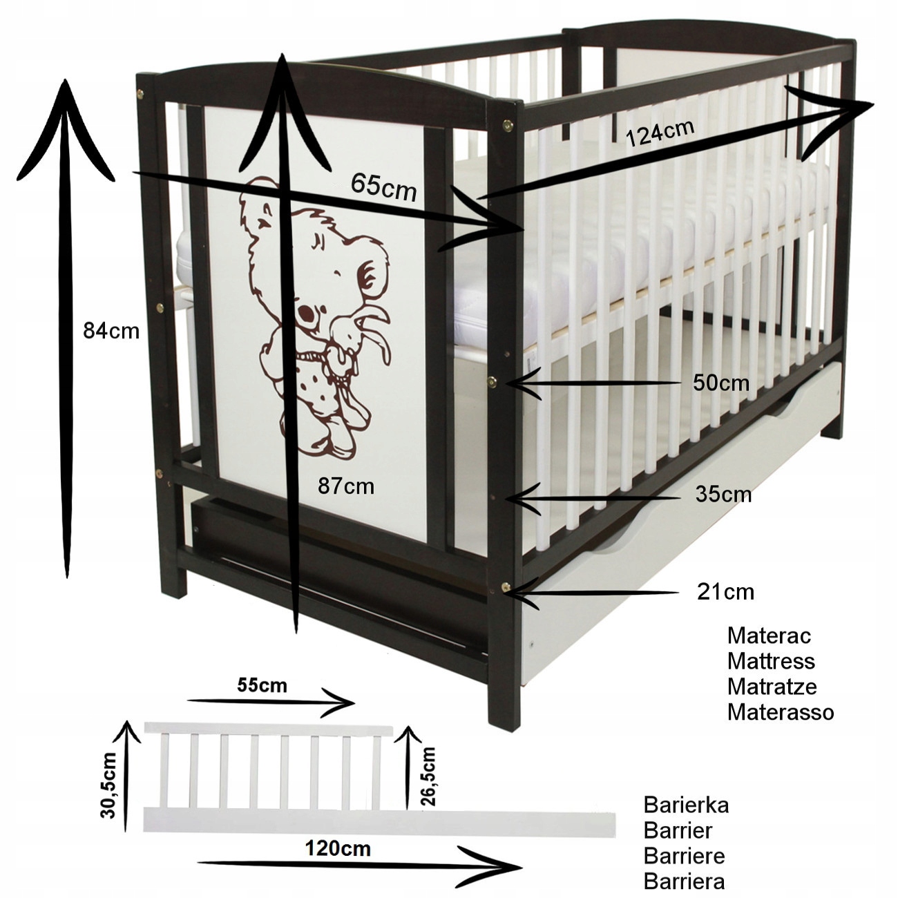 - Байка детская кроватка с ящиком 120х60см, венге/белый