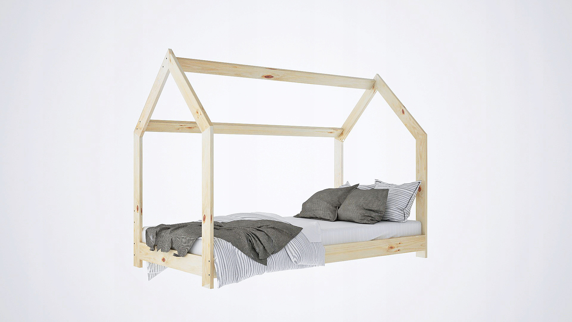 Детский кровать, сделанный из натурального дерева, в очаровательной форме дома - цвет дуба Сонома. Идеально подходит для комнаты каждого малыша.