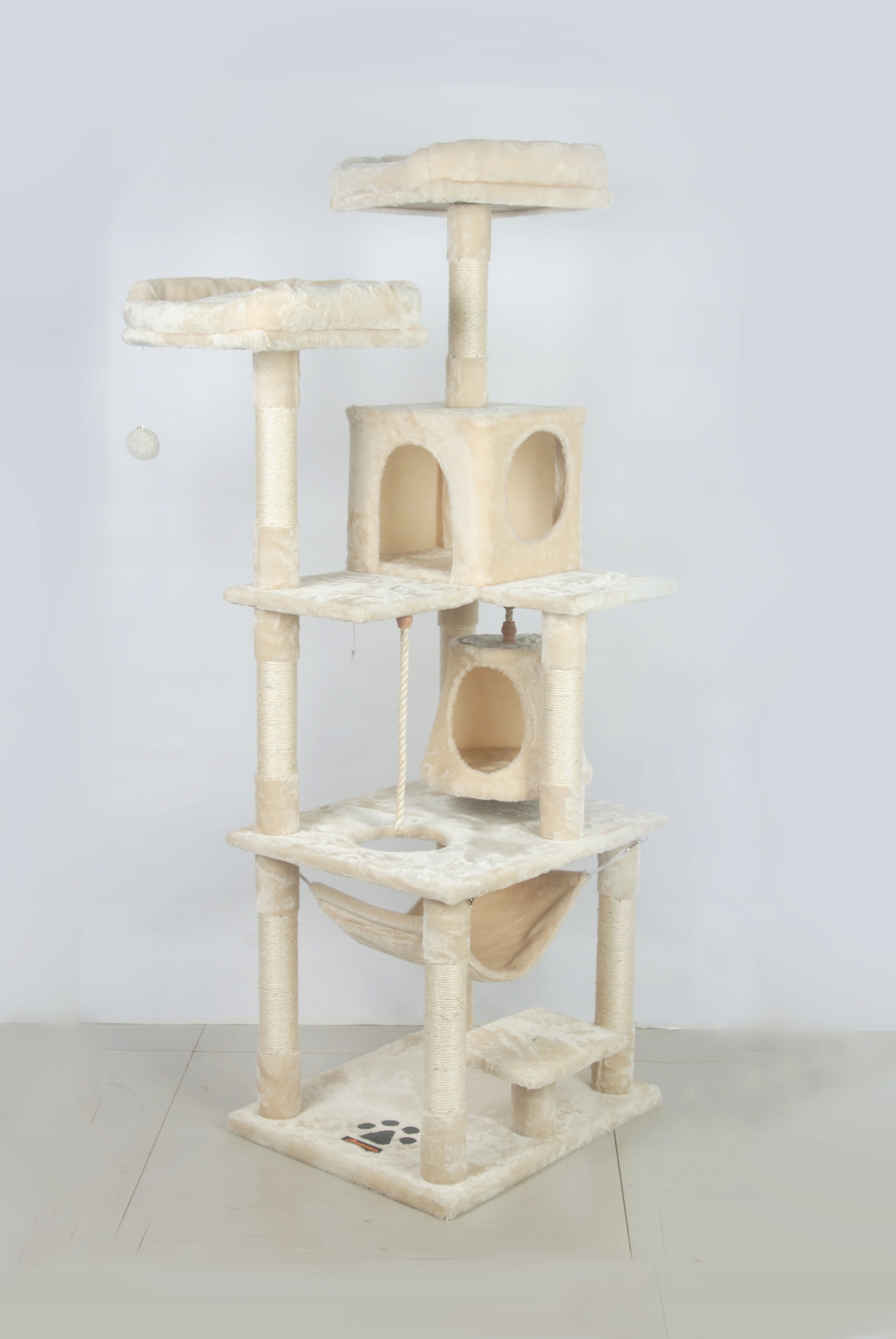 Настоящий рай для кошек, которые любят подниматься. Эта башня предлагает доступ к до 6 уровней и пространству для царапин, игры и дремоты. Кошка может развивать свои когти на толстых стволах и поднимается на вершину замка кошки. Сделайте это мебель для кошки, со вкусом дополнение к декору квартиры. > который подвешен между толстыми колоннами. Он был прикреплен к верхней платформе с помощью толстых твердых всплесков