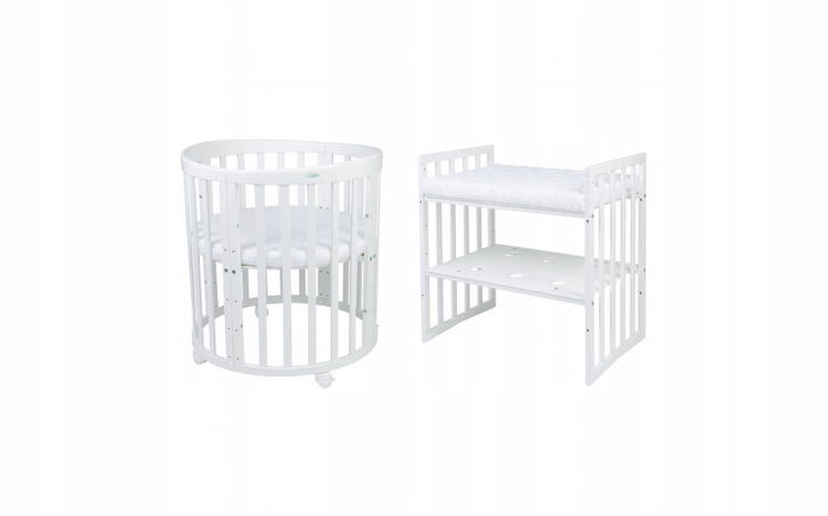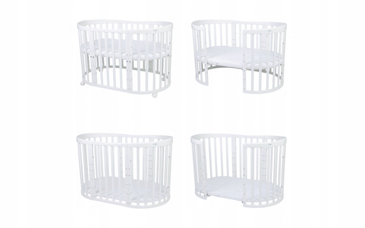 Овальная кровать 7-в-1 Овальная кроватка 7-в-1 практичный, элегантный и прочный. Это выбор на годы – он будет служить вашему ребенку от рождения до 10 лет или даже дольше – все зависит от развития вашего ребенка. Он изготовлен из тщательно отобранных материалов и гарантирует безопасность и комфорт вашего малыша. Техническая информация: Маленькая овальная кровать: высота 81 см, ширина 78 см, длина 78 см. Большая овальная кровать: высота 81 см, ширина 78 см, длина 128,5 см. Пеленальный столик: высота 81 см, ширина 50 см, длина 78 см. 5-уровневая регулировка высоты пола: 12 см, 24 см, 35 см, 47 см и 55 см.