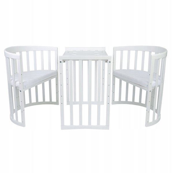 ЛІЖКО ДЕРЕВ'ЯНЕ, ОВАЛЬНЕ, БІЛЕ 7В1 + МАТРАС WALDIN
