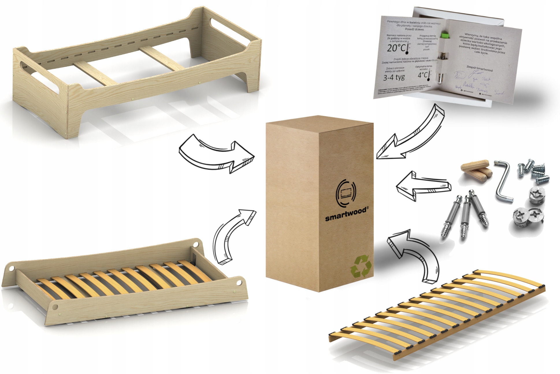✔️В комплекте:Кровать, каркас, ящик со спальным местом, шурупы и аксессуары для сборки, а также флакон с семенами сосны - мы заботимся об экологии.