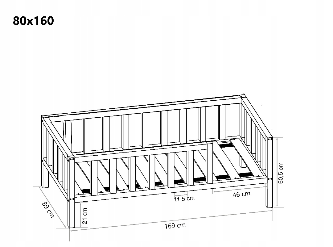 Детская кровать из массива дерева, размер матраса 80х160, внешние размеры 89х169 см.