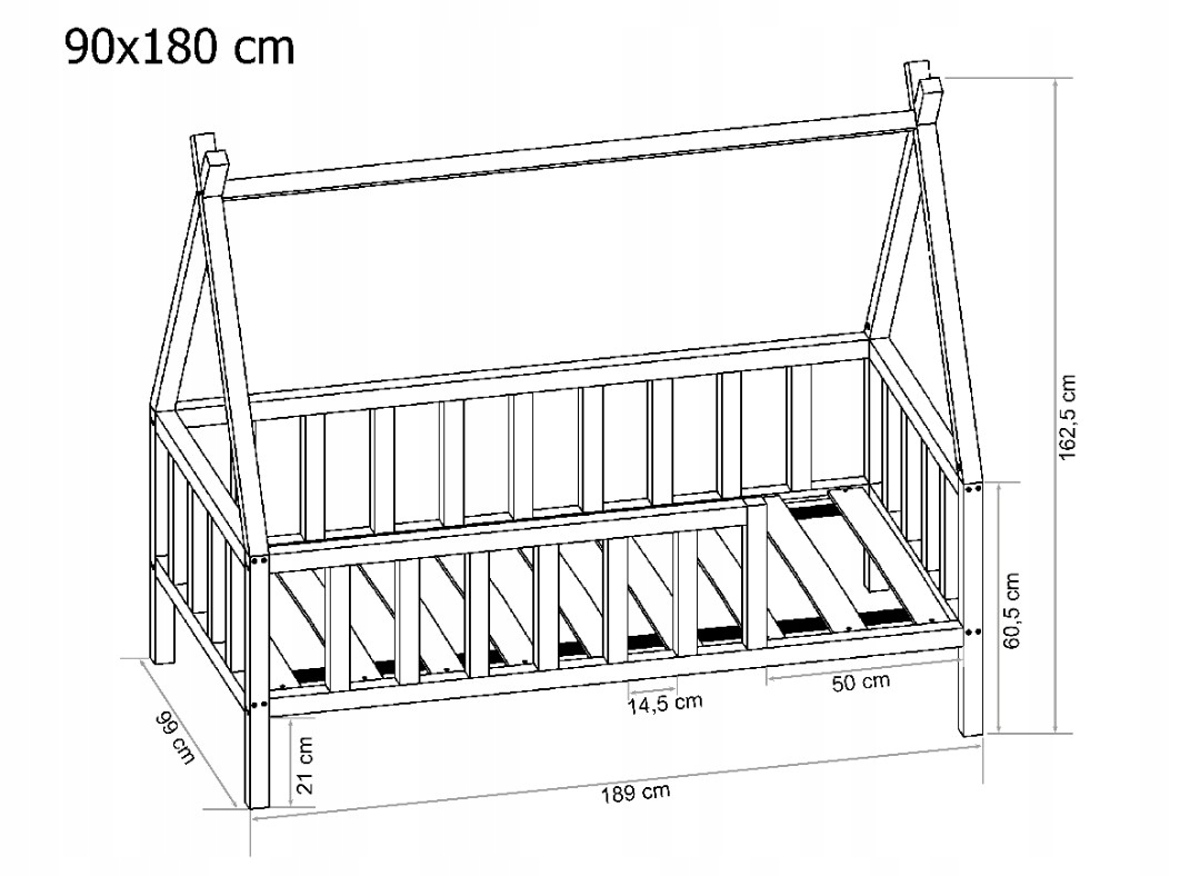 Детская кровать Типи из массива дерева, размер матраса 90х180, внешние размеры 99х189 см.