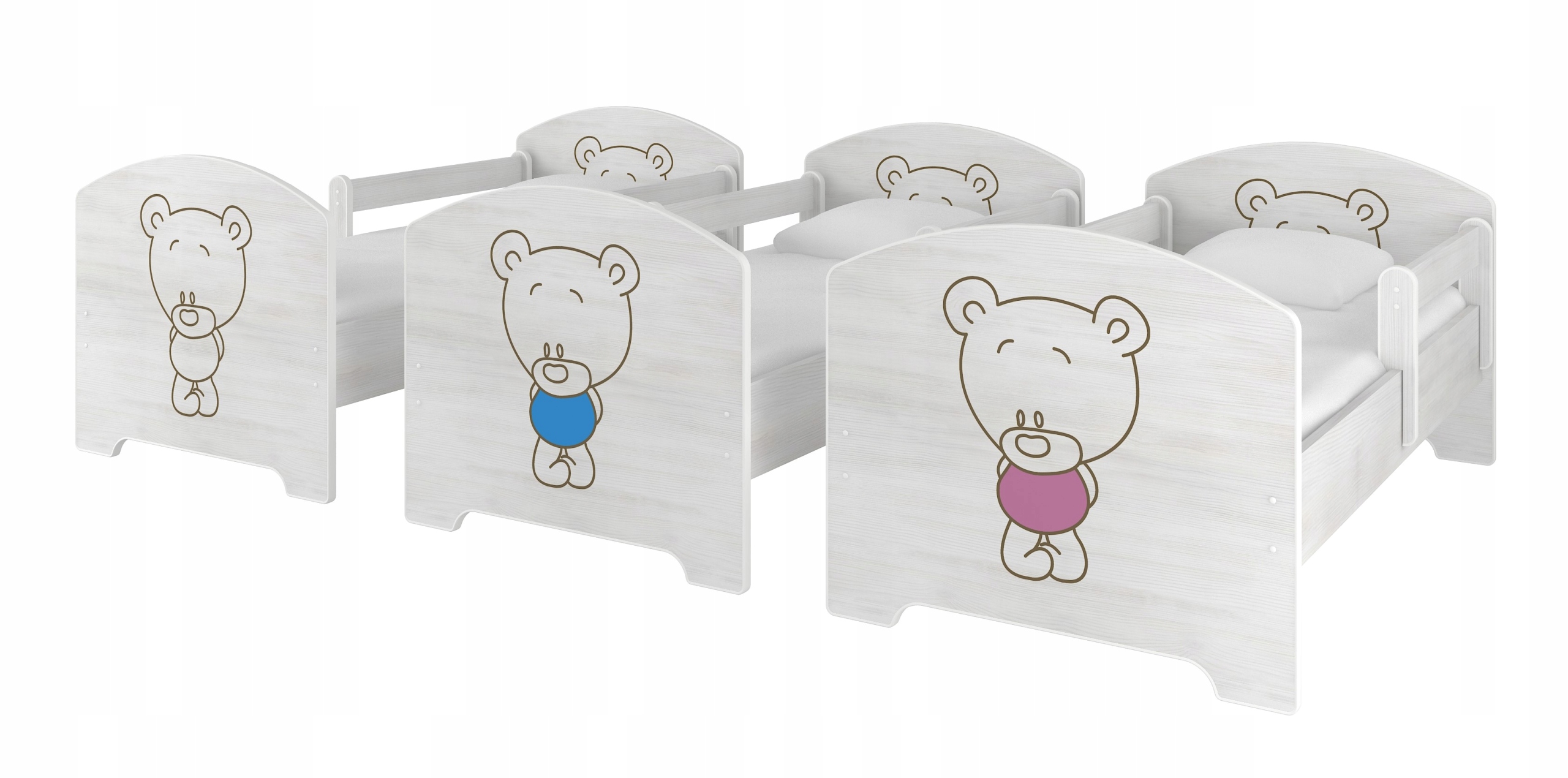 Фронты кроватей имеют красочные принты, они можно смело мыть тряпкой. Отпечатки закрепляются специальным ламинатом, что обеспечивает долговечность и предотвращает выцветание изображения.