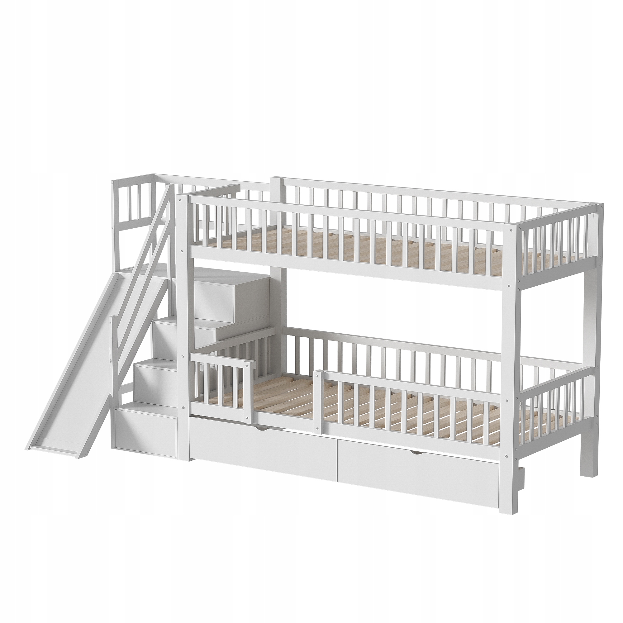 Bunk Bed для детей, двуспальная кровать, многопрофессиональная кровать для детей, со слайд и лестницей, с 2 ящиками, с магнитными дверями, без матраса, твердого дерева, белого, 90*200