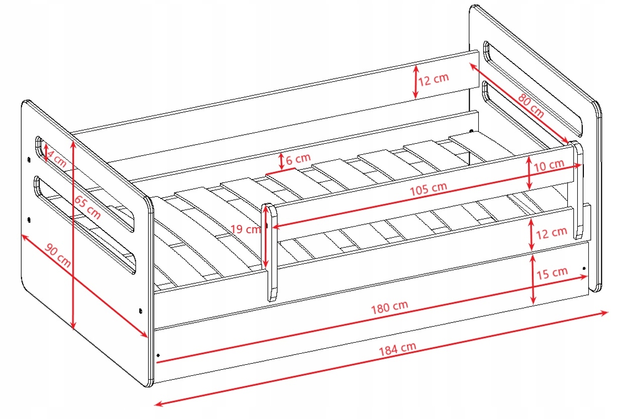 Детская мебель, созданная со страстью и необычайной уходом, так что они удобны , Практический и, прежде всего, безопасный !! Наша кровать для ребенка не имеет острых краев , поэтому вы не должны беспокоиться о том, что ребенок, ушедший в постель или его район может повредить себе. На закругленных краях дополнительно мягкий профиль, напоминающий резину для обеспечения максимальной безопасности . вращение, бурение является распространенным явлением, а бросание одеяла и подушки -мы знаем это, и у нас есть способ, поэтому был установлен защитный барьер, который также предотвращает комфорт падения, и мои родители, мы можем спать мирно, и не смотреть. 105 -сантиметровый барьер является подвижным, мы можем установить его на краю кровати прямо в изголовье (как на рисунке), посередине или в ногах.