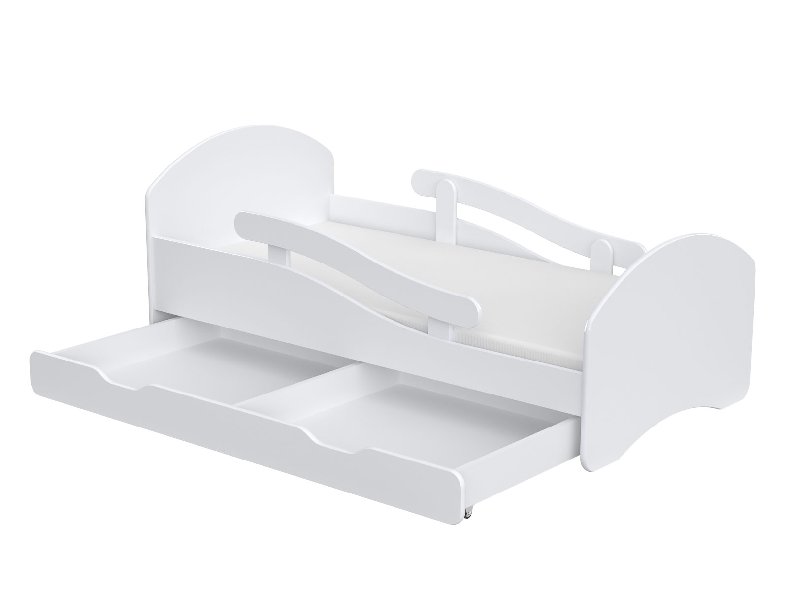 Отличительным элементом являются закругленные барьеры, благодаря которым данное решение обеспечивает высокий уровень безопасности. Барьеры можно снимать днем для игры и снова надевать на ночь.
