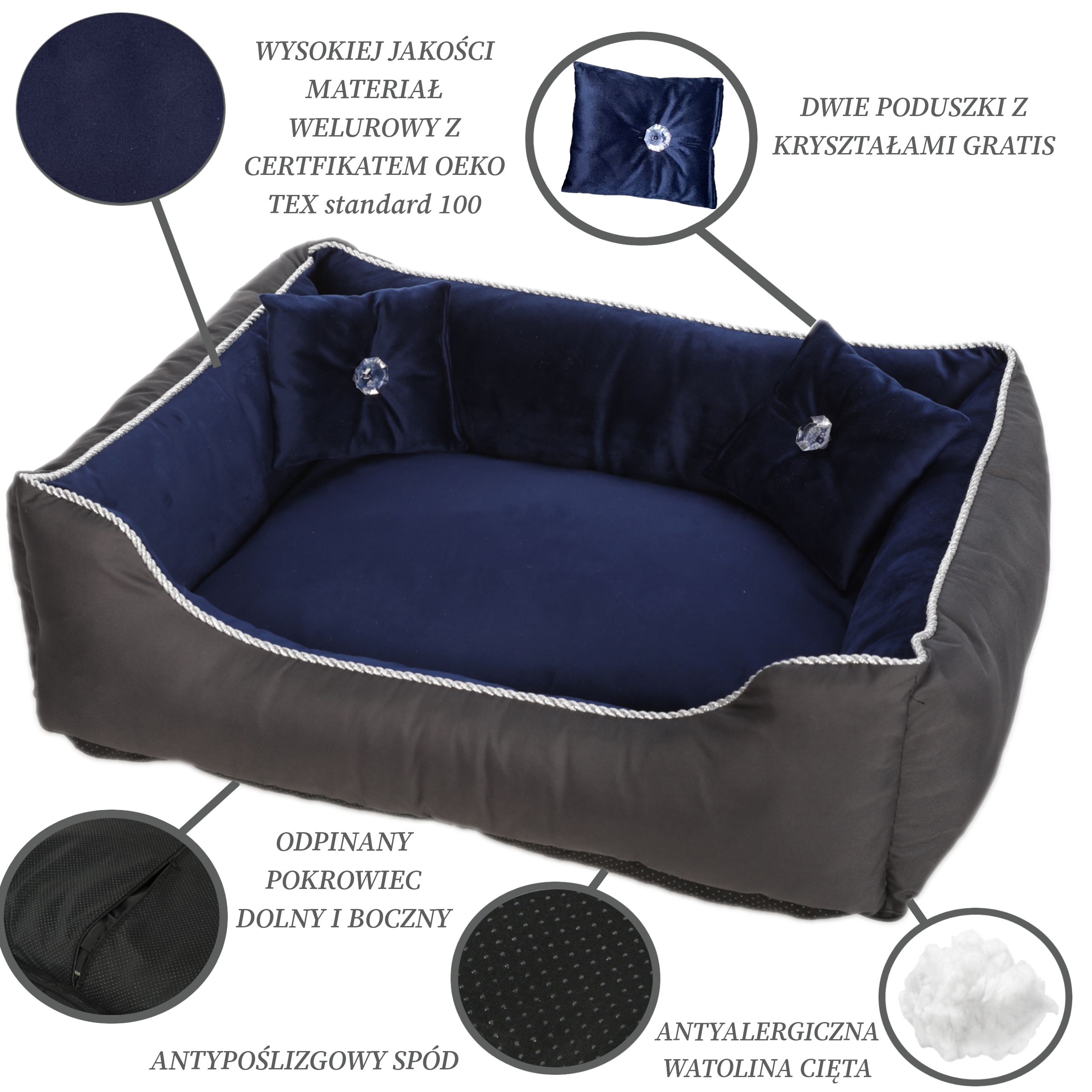 Прошли те времена, когда хотелось спрятать собачью кроватку где-нибудь подальше от глаз. Сегодня можно с успехом купить добротно сделанную кровать, которую можно с гордостью представить в гостиной, гостиной, холле или на террасе. Мебель для животных – это изысканные модели, которые радуют глаз очень красивым дизайном. Помимо визуальной ценности, они еще и очень функциональны, и животным просто нравится проводить на них время. Наша кровать размера L имеет чрезвычайно продуманный дизайн. Молнии расположены по бокам кровати и снизу, что облегчает вынимание наполнителя внутри. Нижняя часть кровати изготовлена из противоскользящего материала, который предотвращает ее скольжение по полу.