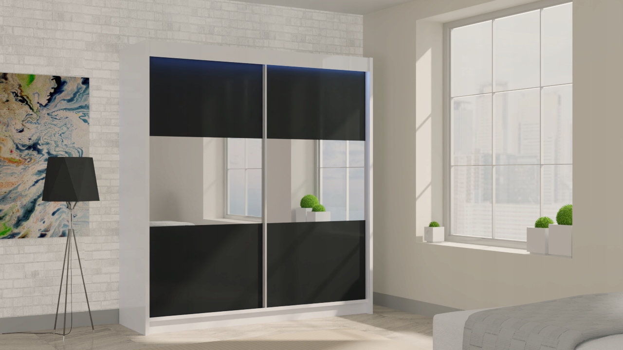 Для дополнения спальни мы предлагаем более 100 моделей шкафов-купе шириной 120, 150, 160, 180, 200, 240 см, доступных в белом, черном, графитовом, дубовом или венге с фурнитурой и светодиодной подсветкой.