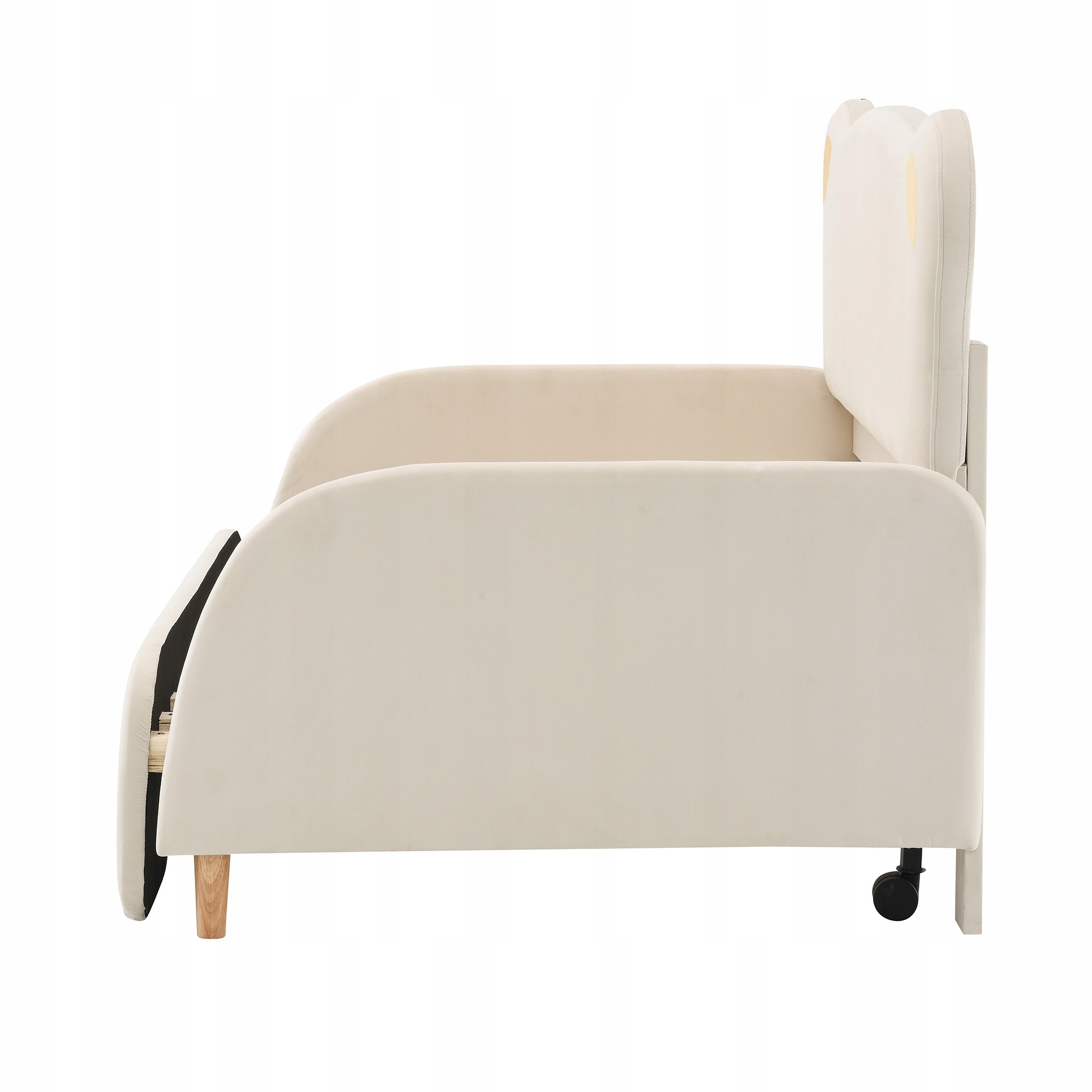 Кровать двуспальная в форме мишки Тедди, мягкая кровать, детская кровать, диван, выдвижная кровать, с мягкими защитными краями, с деревянными рейками, бархат, бежевый (140х105см и 140х200см)