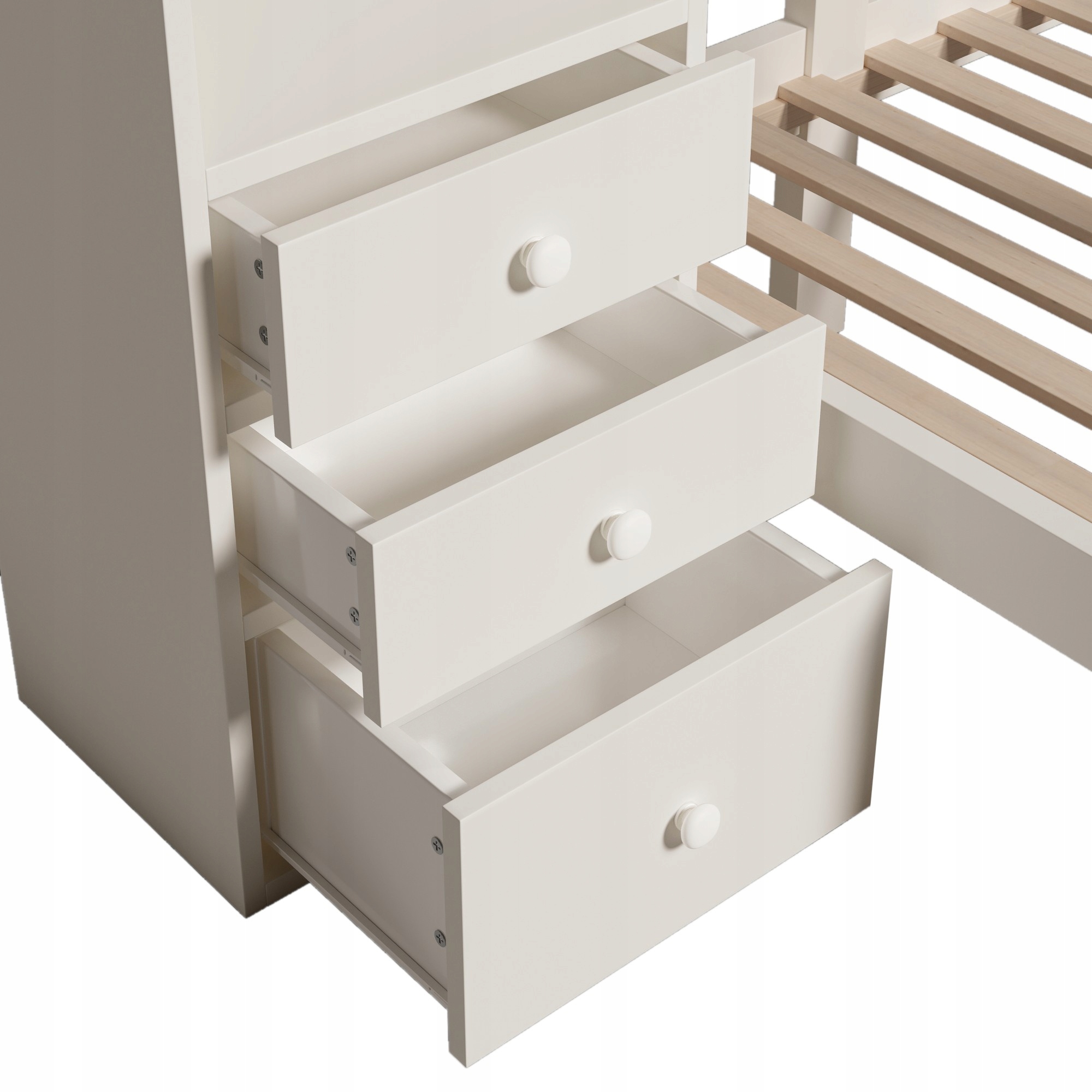 - ⭐【Просторное место для хранения вещей, универсальное использование】С левой стороны кровати находится шкаф с тремя ящиками и двумя полками. Ящики имеют привлекательные ручки грибовидной формы, а дверцы шкафа — полукруглые. С правой стороны креативно интегрирована трехуровневая полка с лестницей. Вы и ваша семья можете разместить рамки для фотографий и книги на полках или одеялах внутри шкафа, тем самым удовлетворяя различные потребности вашей семьи в хранении.