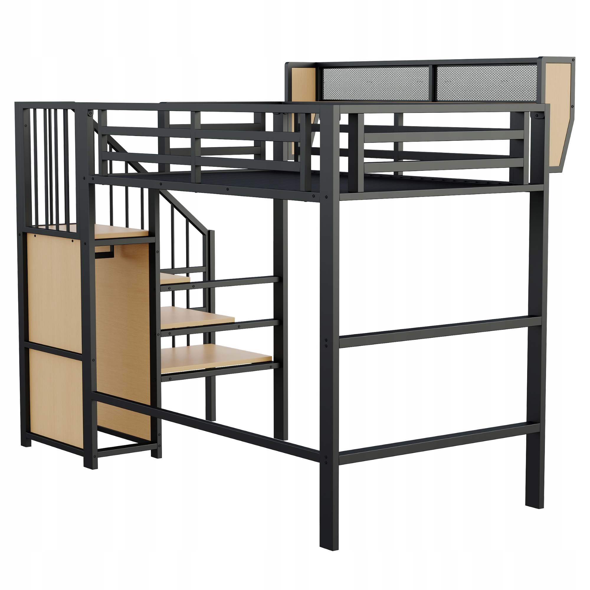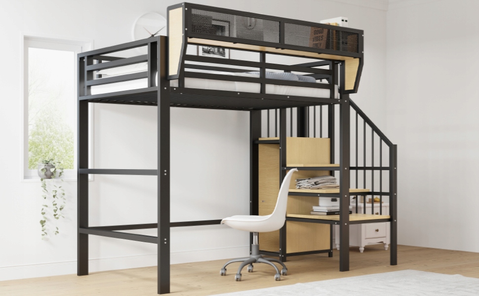 - Эта двухъярусная кровать оснащена безопасной лестницей, по которой легко подняться, для безопасного доступа к приподнятой спальной зоне для людей всех возрастов.