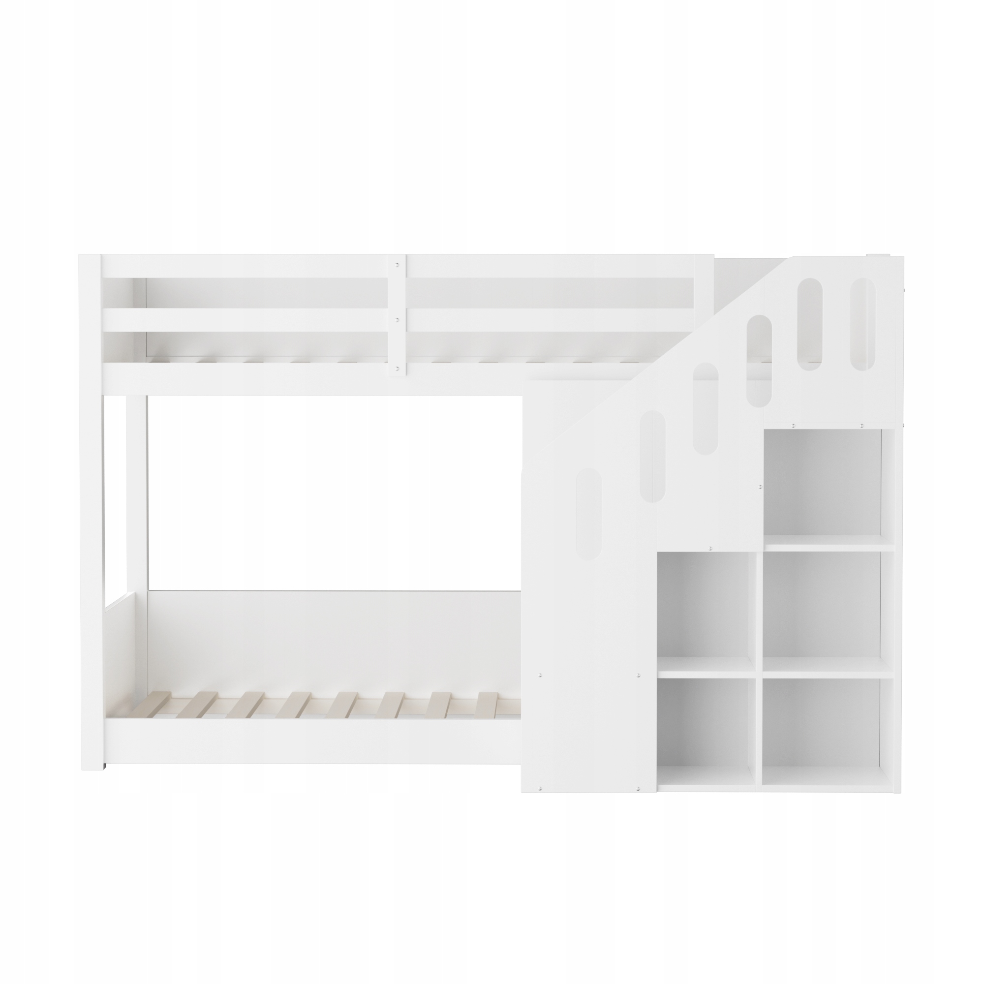 двухъярусная кровать для детей, двуспальная кровать, много -функциональная кровать для детей, с лестницей и шкафами, стабильная поручни, без матраса, 90*200 см, белый
