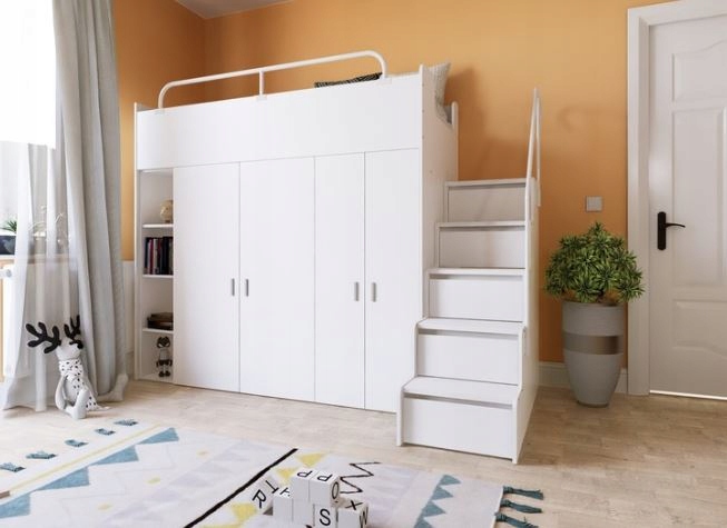 Кровать двухъярусная KIKI 2 – функциональное и практичное решение для детской или подростковой комнаты. Оснащенный удобными ступеньками, он обеспечивает легкий доступ к верхней кровати, что делает его безопасным для пользователей. Кроме того, KIKI 2 имеет два встроенных шкафа с обеих сторон, в которых достаточно места для хранения одежды, книг и других предметов. Это идеальное решение для тех, кто ищет практичный предмет мебели, сочетающий в себе функциональность, экономию места и эстетичный дизайн.