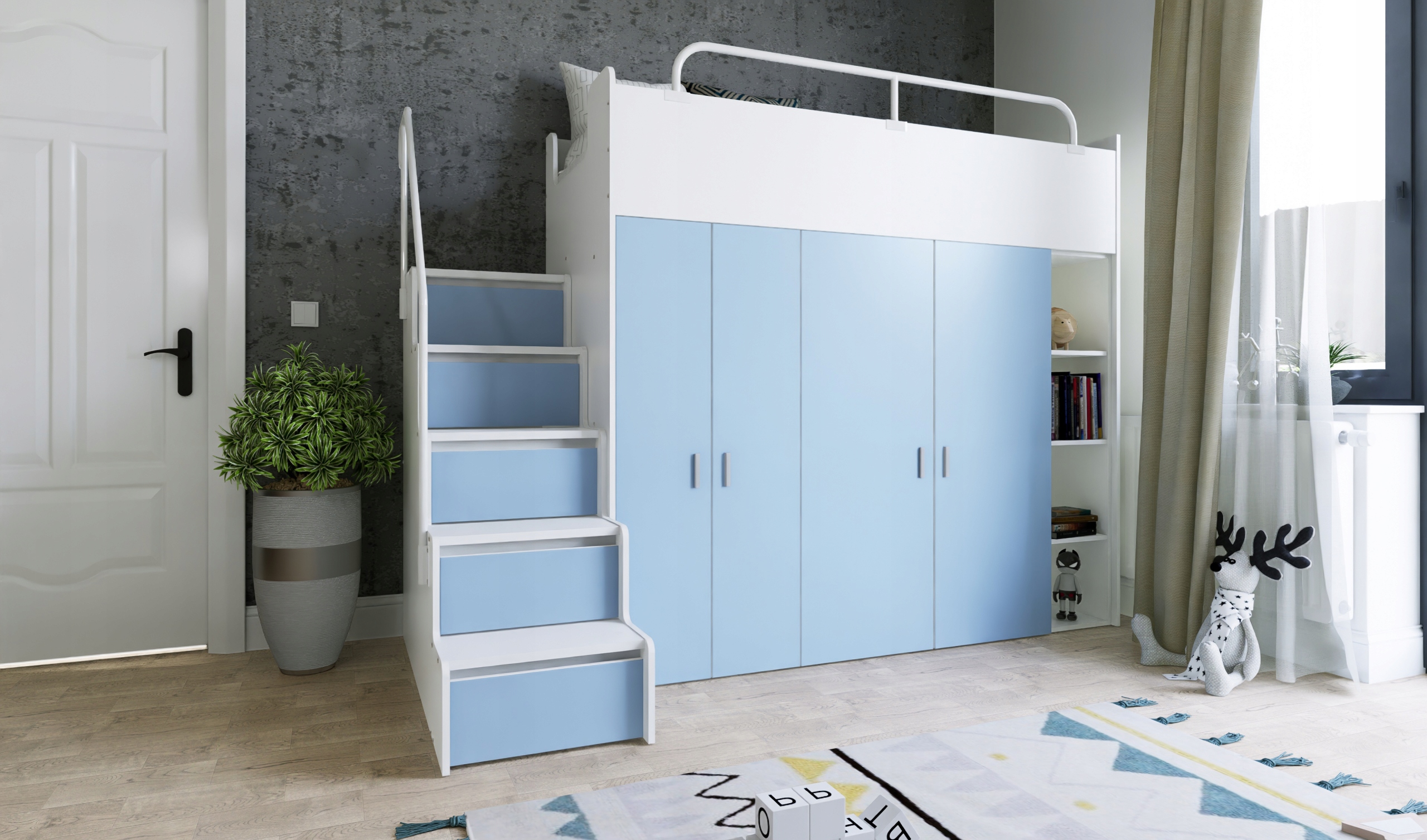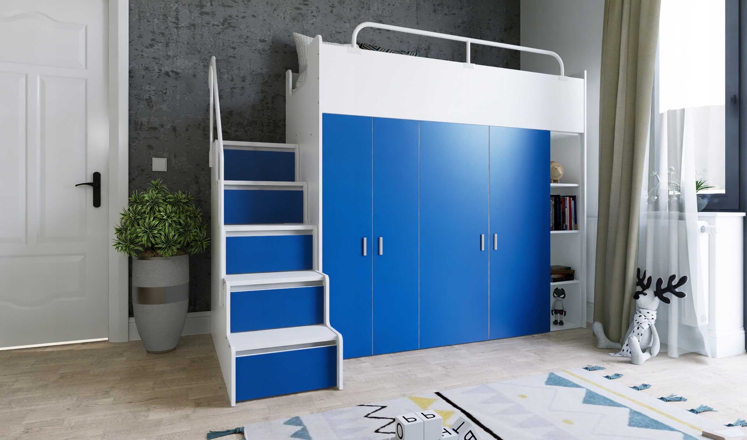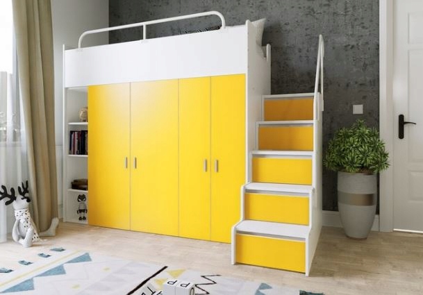 Двухъярусная кровать KIKI2 – функциональное и практичное решение для детской или подростковой комнаты. Оснащенный удобными ступеньками, он обеспечивает легкий доступ к верхней кровати, что делает его безопасным для пользователей. Кроме того, KIKI2 имеет два встроенных шкафа с обеих сторон, в которых достаточно места для хранения одежды, книг и других предметов. Это идеальное решение для тех, кто ищет практичный предмет мебели, сочетающий в себе функциональность, экономию места и эстетичный дизайн.