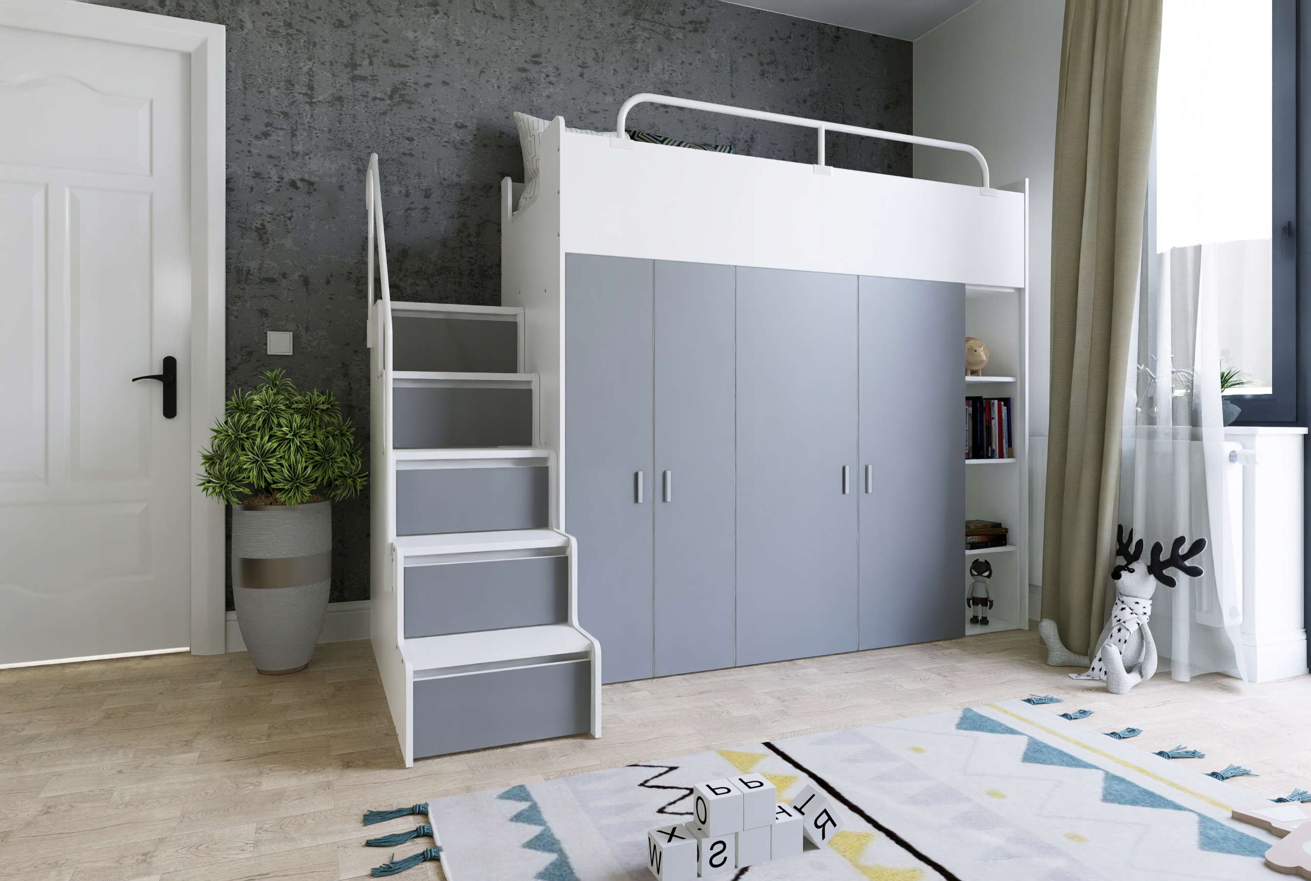 Двухъярусная кровать KIKI – функциональное и практичное решение для детской или подростковой комнаты. Оснащенный удобными ступеньками, он обеспечивает легкий доступ к верхней кровати, что делает его безопасным для пользователей. Кроме того, KIKI 2 имеет два встроенных шкафа с обеих сторон, в которых достаточно места для хранения одежды, книг и других предметов. Это идеальное решение для тех, кто ищет практичный предмет мебели, сочетающий в себе функциональность, экономию места и эстетичный дизайн.