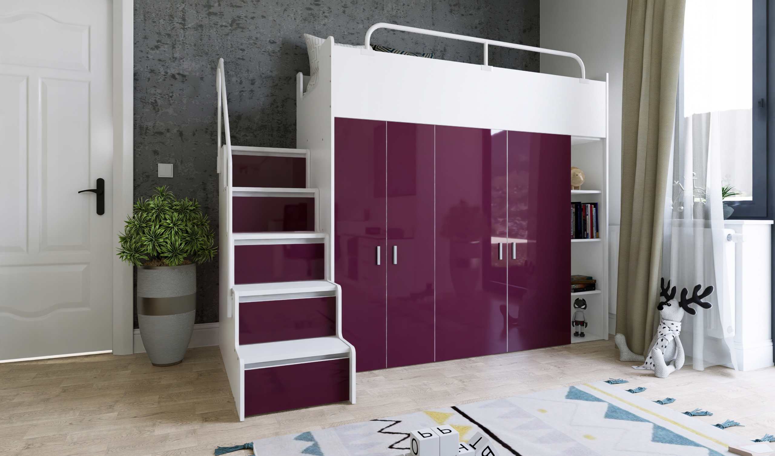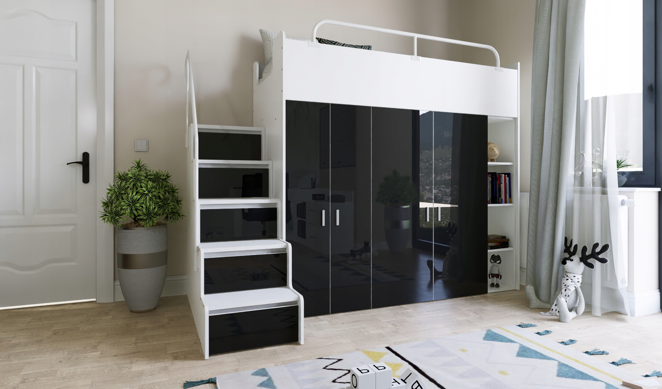 Кровать двухъярусная KIKI 2 – функциональное и практичное решение для детской или подростковой комнаты. Оснащенный удобными ступеньками, он обеспечивает легкий доступ к верхней кровати, что делает его безопасным для пользователей. Кроме того, KIKI 2 имеет два встроенных шкафа с обеих сторон, в которых достаточно места для хранения одежды, книг и других предметов. Это идеальное решение для тех, кто ищет практичный предмет мебели, сочетающий в себе функциональность, экономию места и эстетичный дизайн.