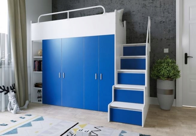 Двухъярусная кровать KIKI 2 – функциональное и практичное решение для детской или подростковой комнаты. Оснащенный удобными ступеньками, он обеспечивает легкий доступ к верхней кровати, что делает его безопасным для пользователей. Кроме того, KIKI 2 имеет два встроенных шкафа с обеих сторон, в которых достаточно места для хранения одежды, книг и других предметов. Это идеальное решение для тех, кто ищет практичный предмет мебели, сочетающий в себе функциональность, экономию места и эстетичный дизайн.