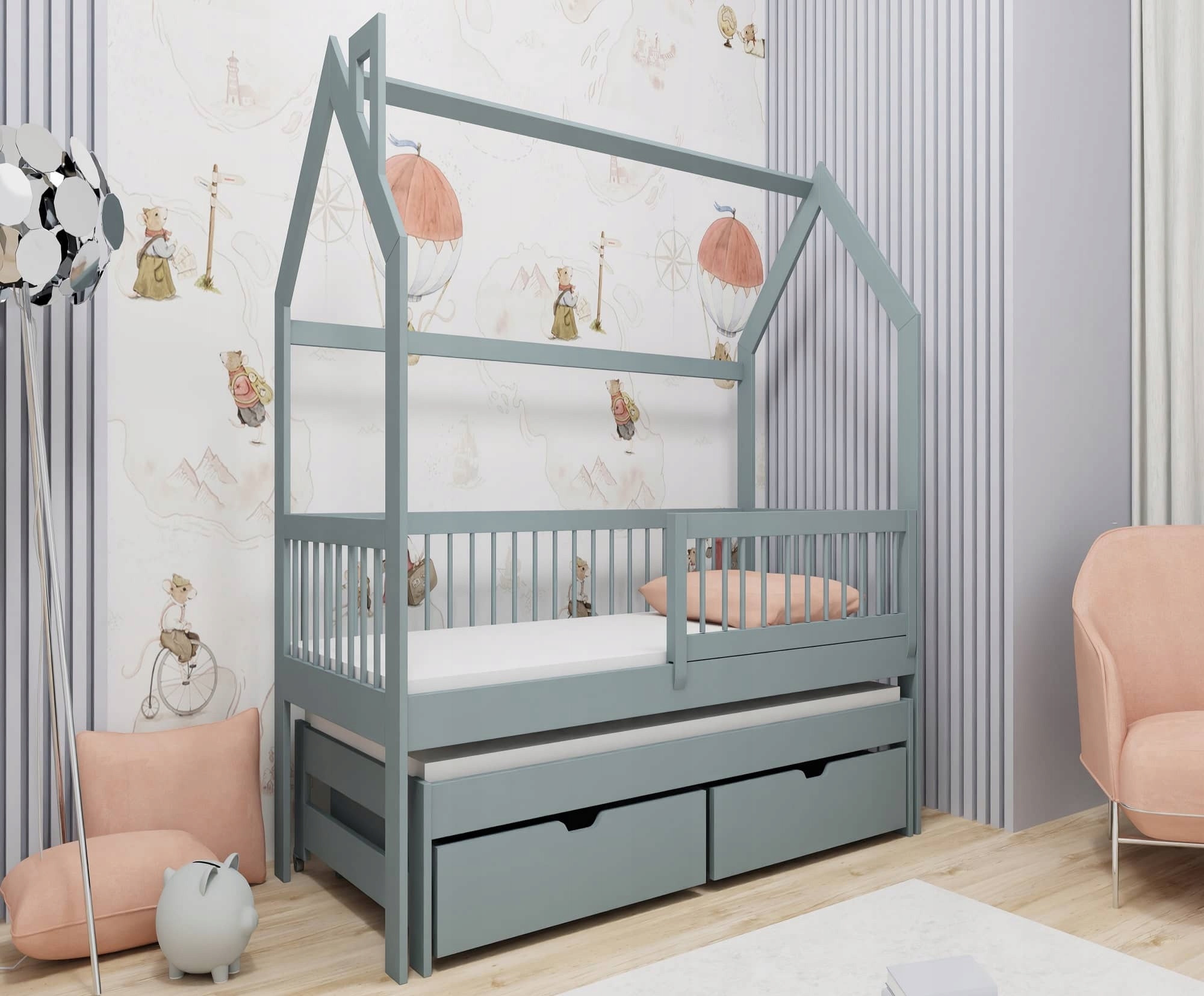 Деревянная кровать-домик DYZIO 80х160 см, серая: