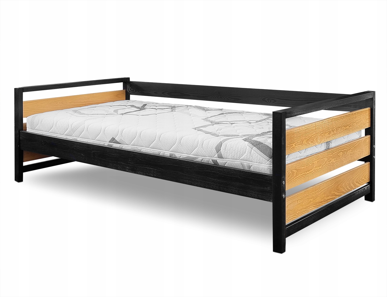 - венге (видно на фото), латте, синий, бирюзовый - натуральная сосновая древесина, окрашенная в определенный цвет, покрыта двойным слоем бесцветного (полуматового) лака. При выборе этого цвета к цене кровати следует добавить 260 злотых.