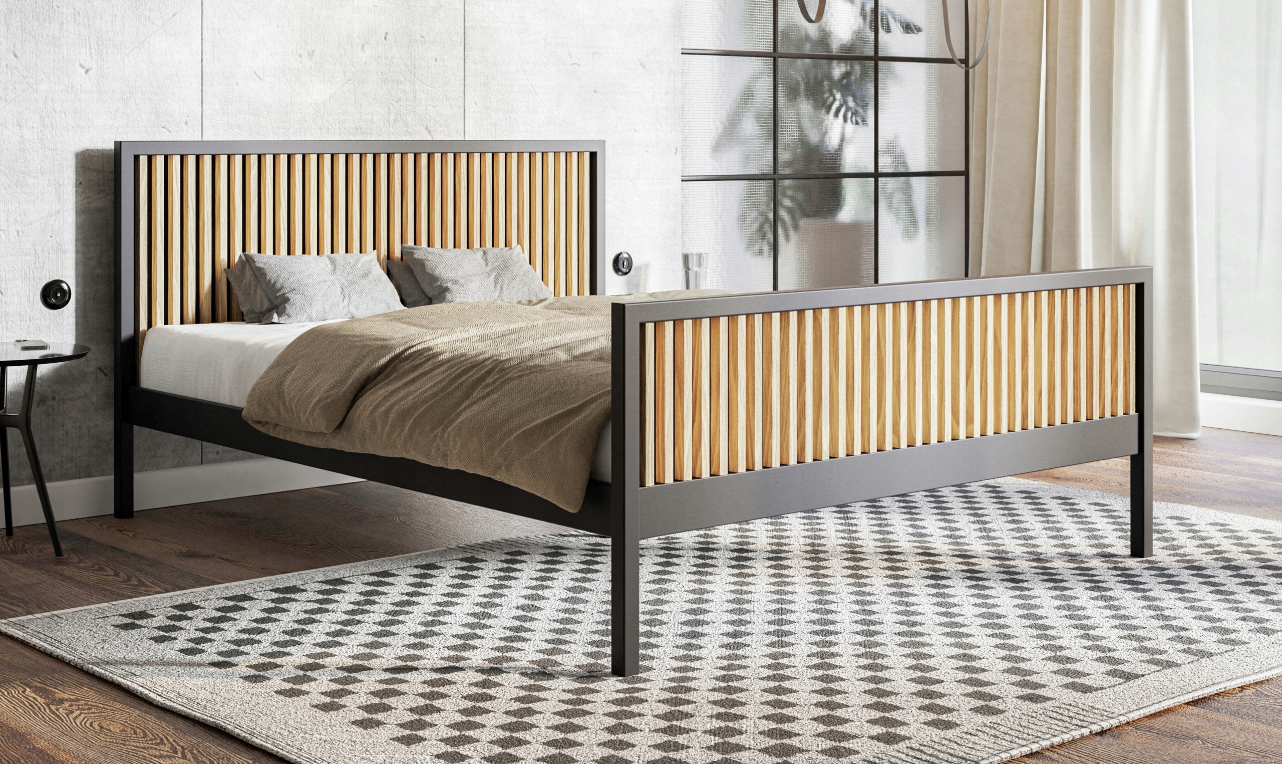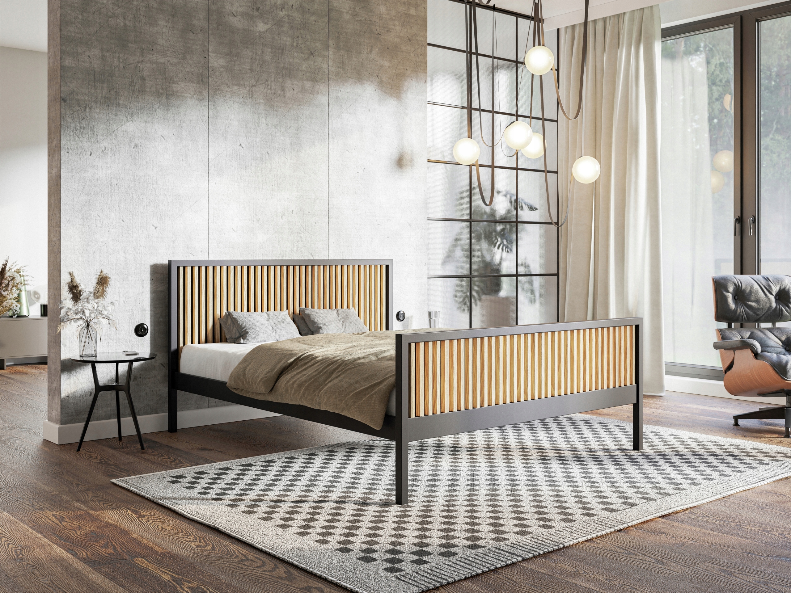 Элегантное, промышленное и изысканное решение для вашей спальни. Разработанный для объединения стиля и функциональности, эта кровать будет отличным центром вашего спального пространства. /li>