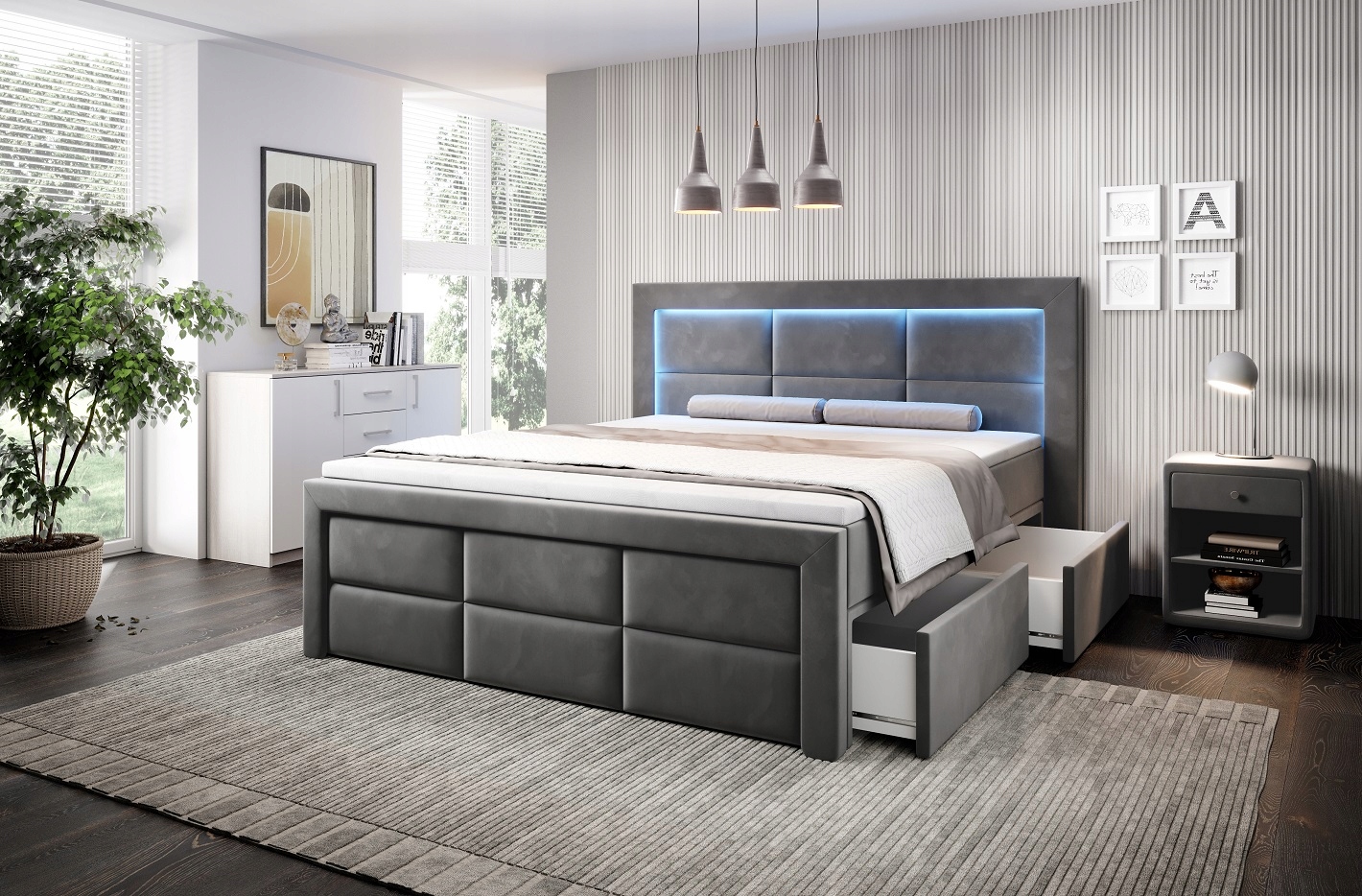 НОВИНКА в нашем предложении!!! Эксклюзивная континентальная кровать ADRIA 2 с тремя матрасами и светодиодным освещением – идеальный выбор для всех, кто ценит отдых в лучшем стиле. Современный дизайн и внимание к каждой детали – идеальное сочетание роскоши и практичности.