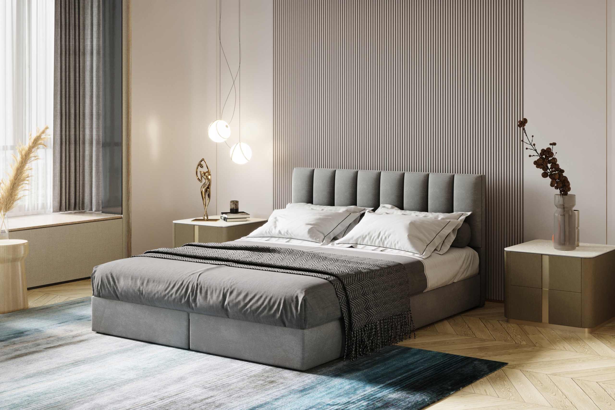 CITY — современная и в то же время роскошная континентальная кровать для каждой современной спальни. Кровать имеет матрас Bonnell средней жесткости.